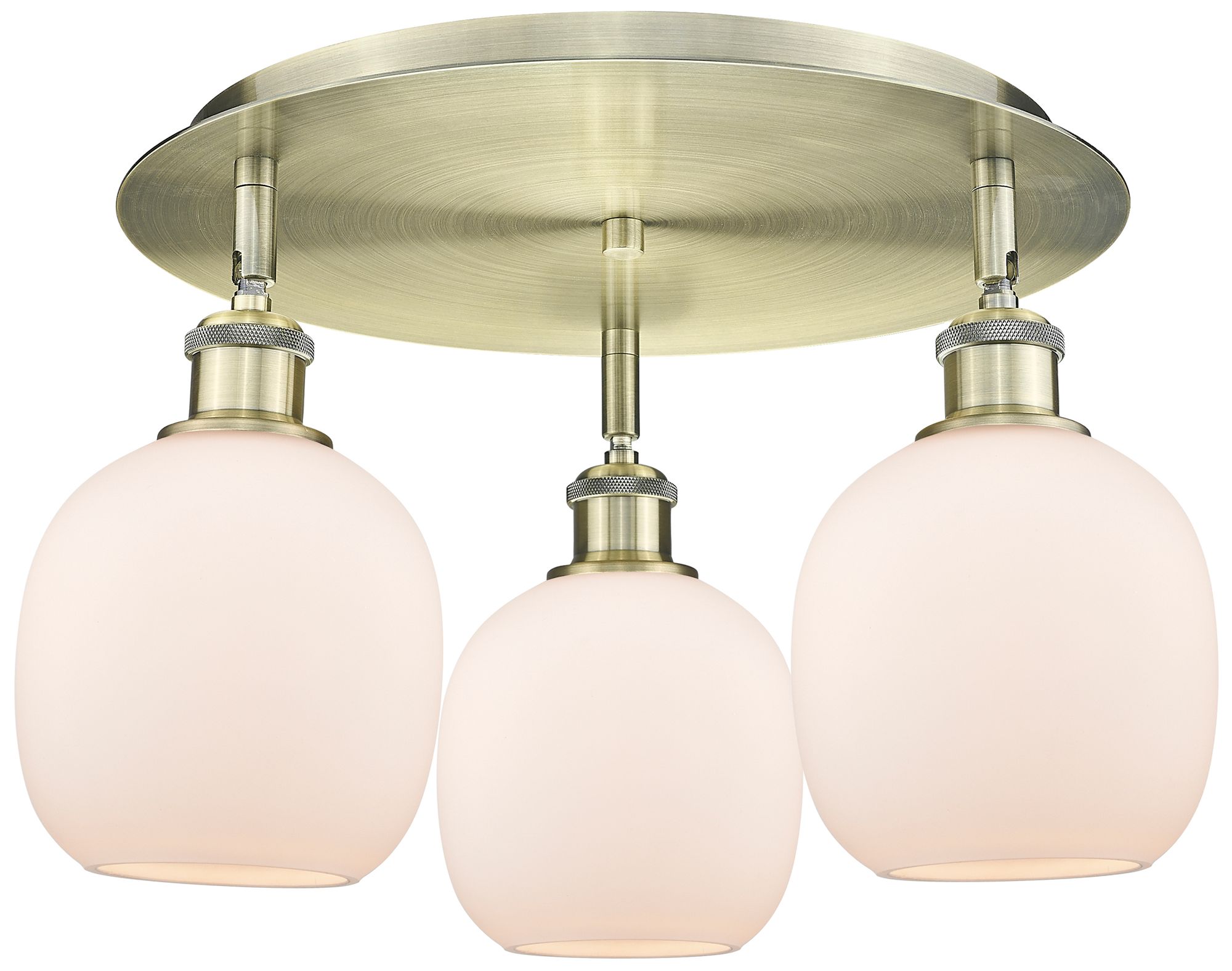 Belfast 17.75"W 3 Light Antique Brass Flush Mount w/ White Shade