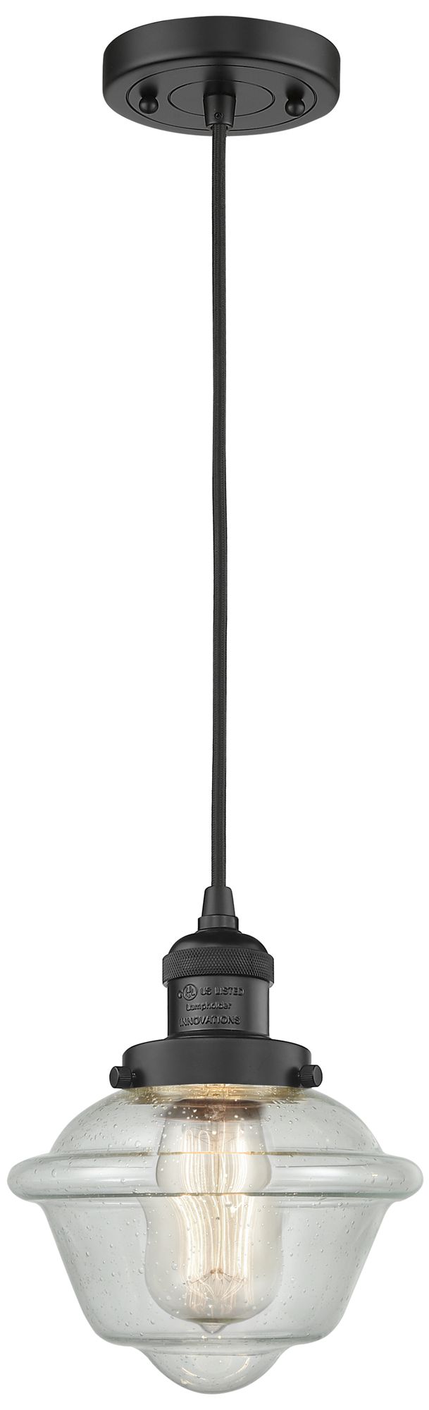 Franklin Oxford 8" Matte Black Corded Mini Pendant w/ Seedy Shade