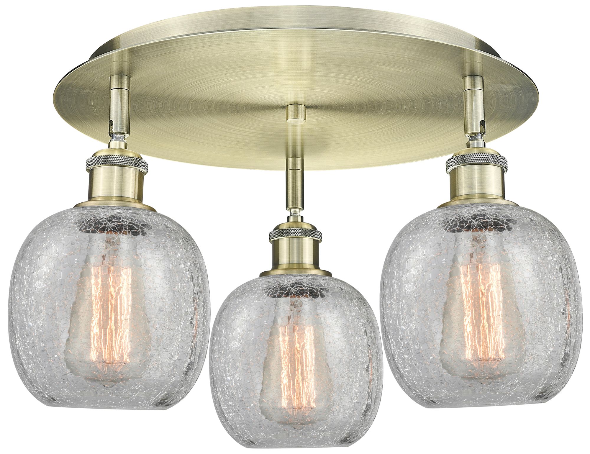 Belfast 17.75"W 3 Light Antique Brass Flush Mount w/ Crackle Glass Sha