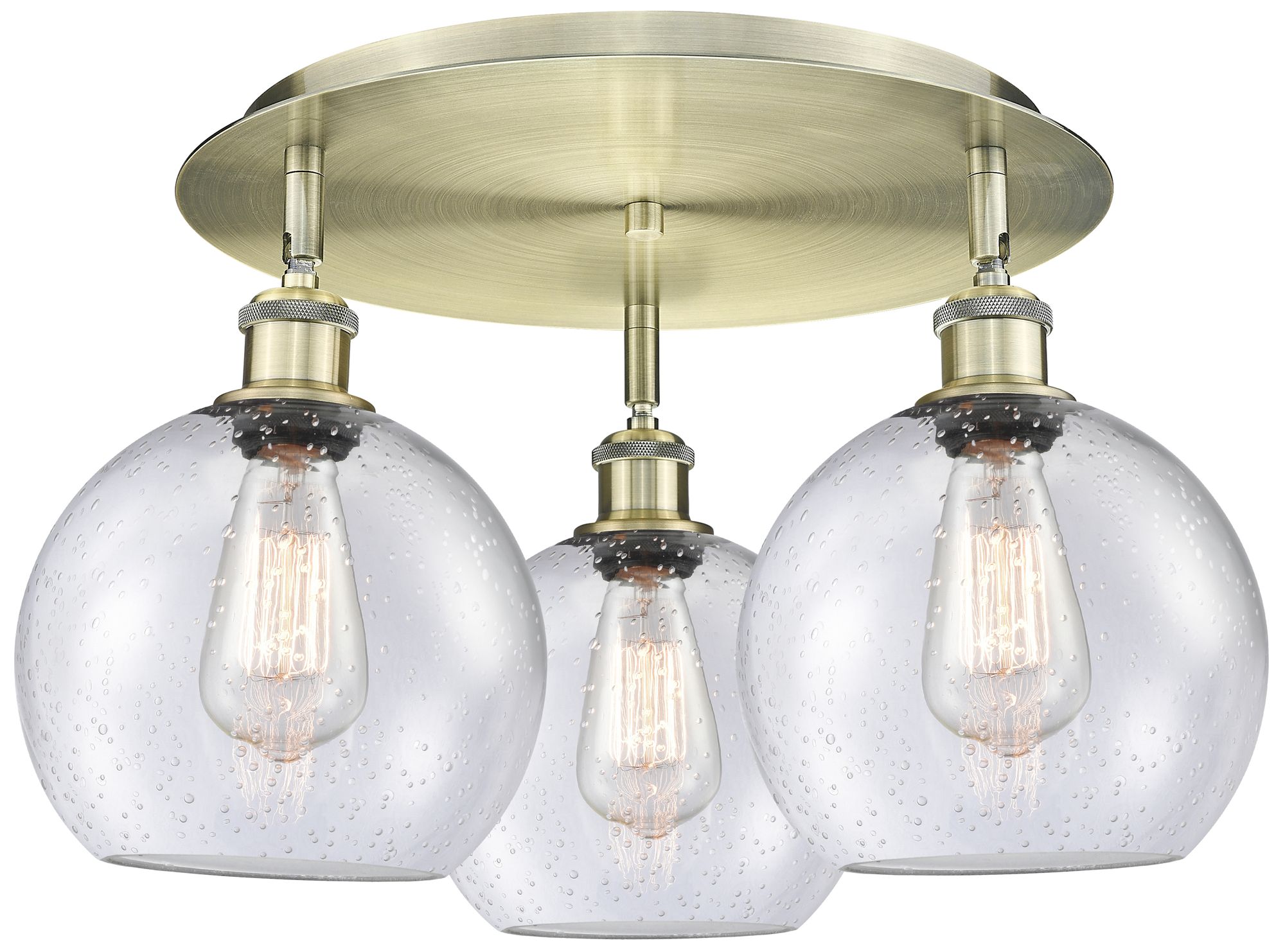Athens 19.75" Wide 3 Light Antique Brass Flush Mount With Seedy Glass