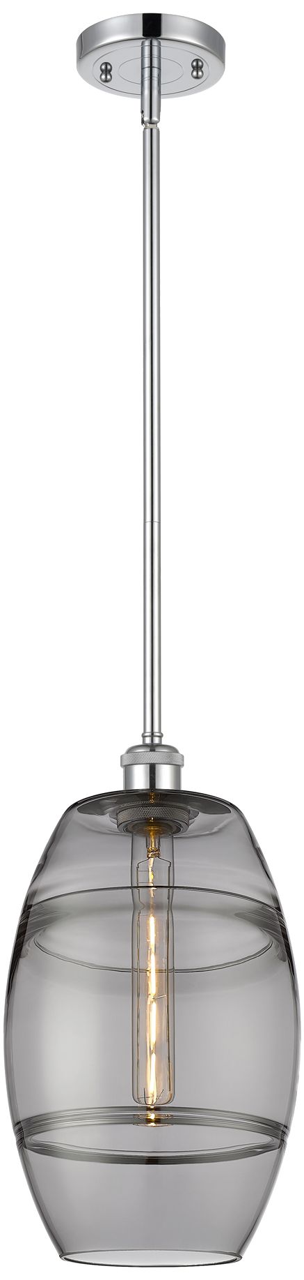 Ballston Vaz 8"W Polished Chrome Stemmed Mini Pendant w/ Light Smoke S
