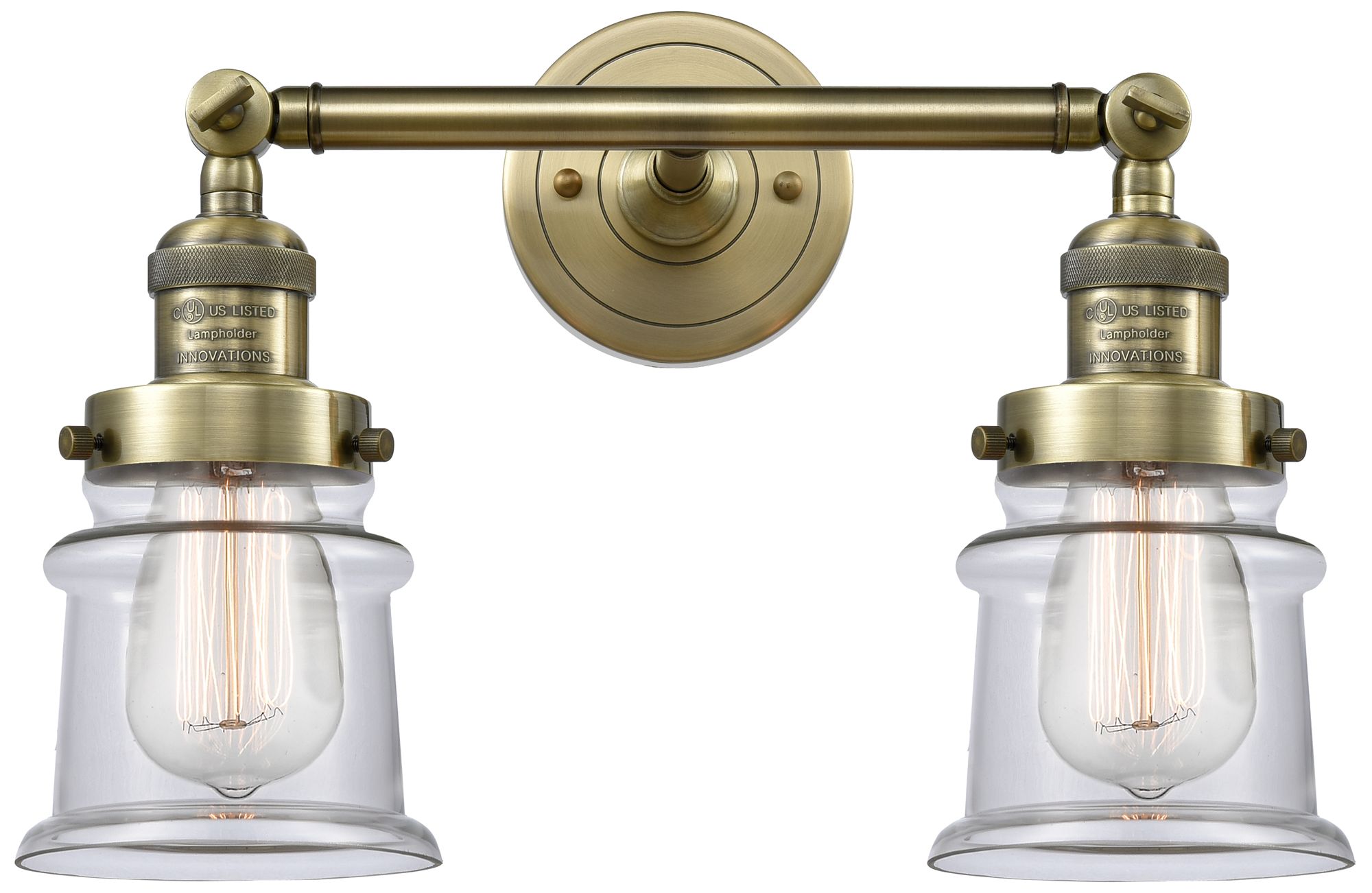 Small Small Canton 17" 2-Light Antique Brass Bath Light w/ Clear Shade