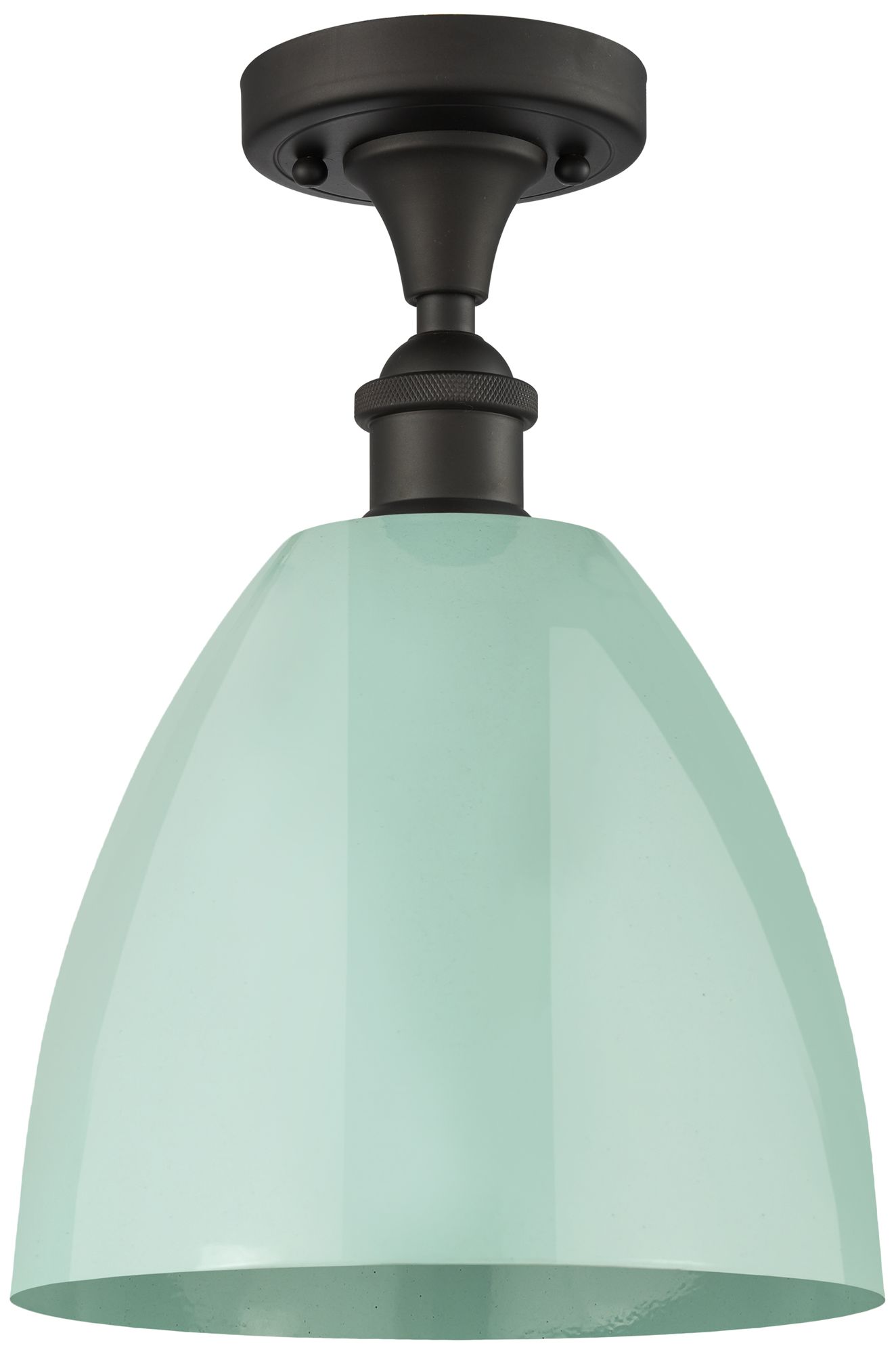 Plymouth Dome 9" Wide Oil Rubbed Bronze Semi Flush Mount w/ Seafoam Sh