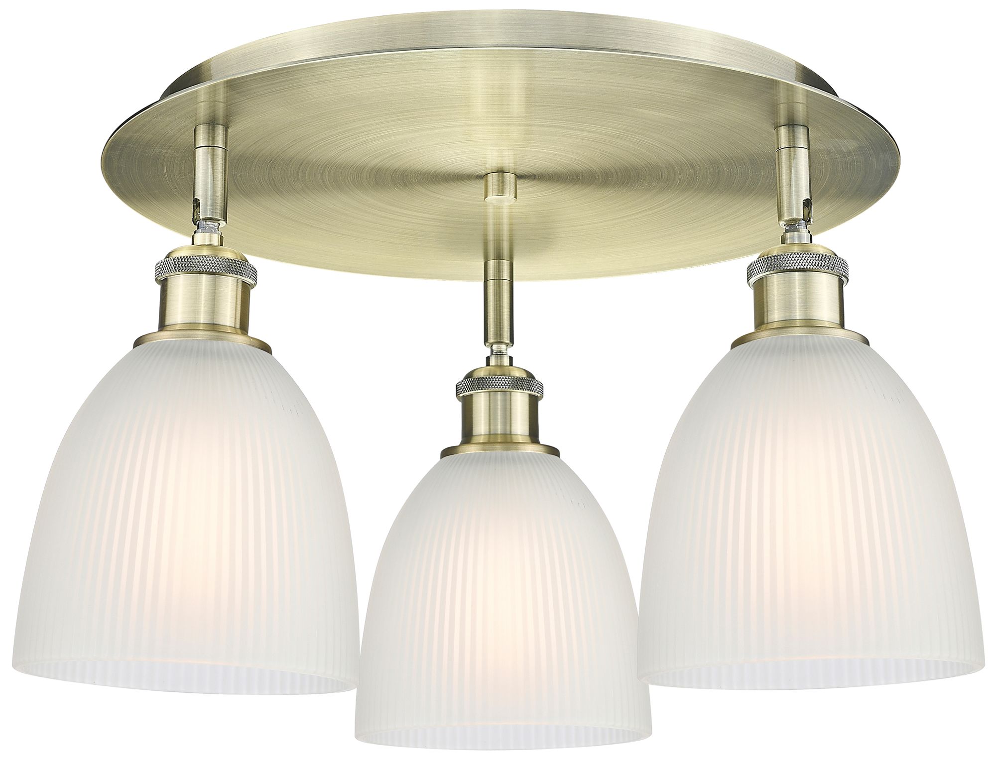 Castile 17.75"W 3 Light Antique Brass Flush Mount With White Glass Sha