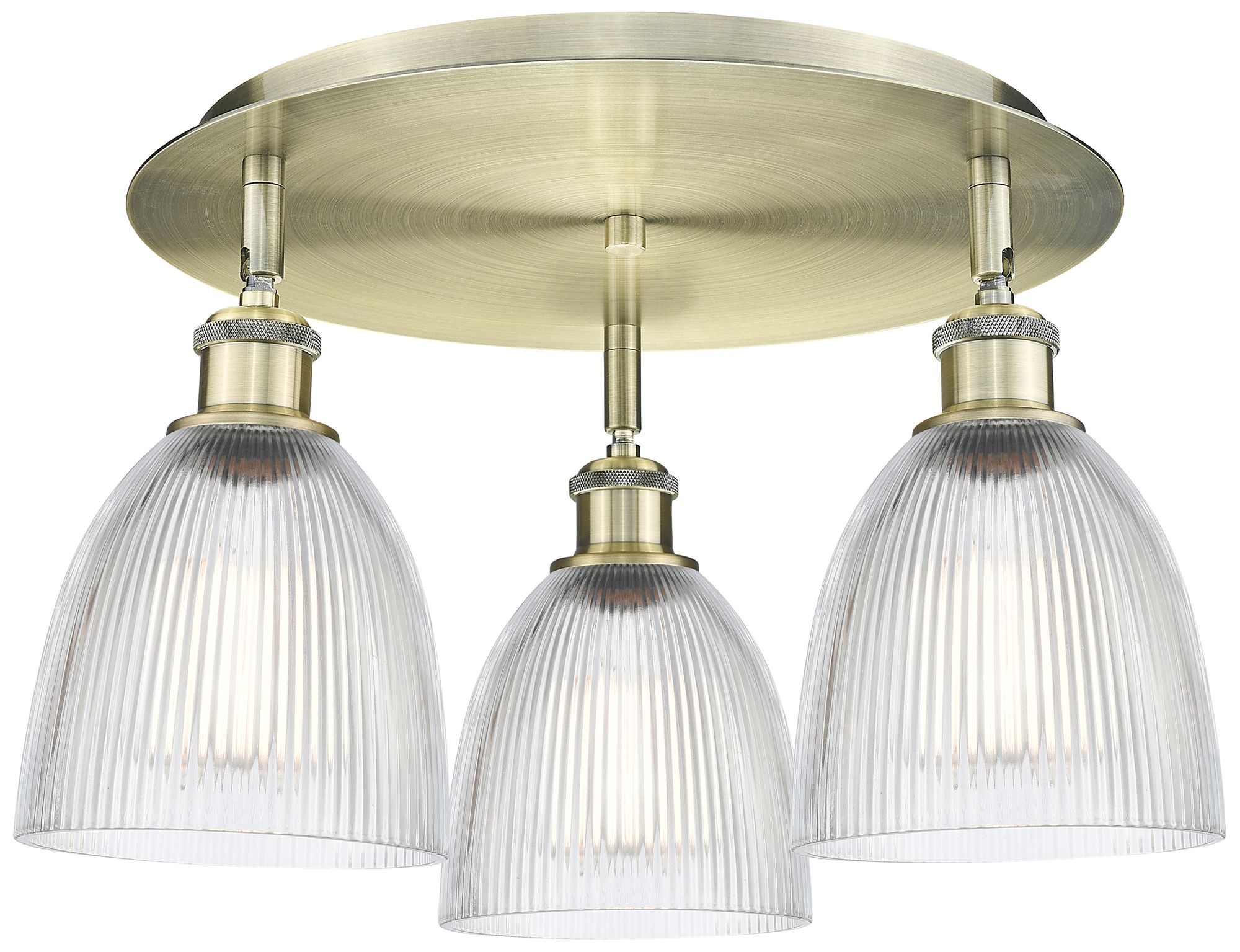 Castile 17.75"W 3 Light Antique Brass Flush Mount With Clear Glass Sha