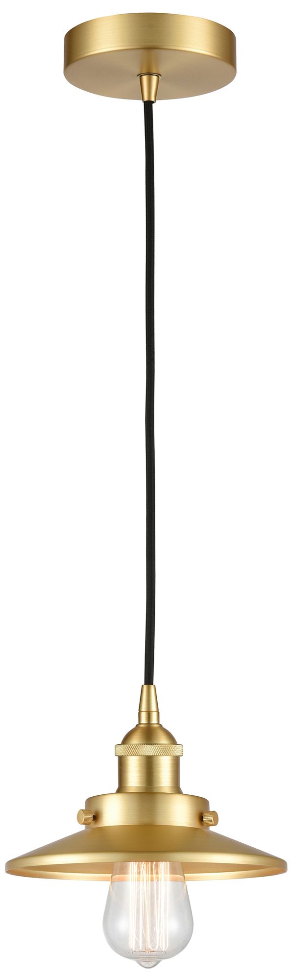 Railroad 8" Wide Satin Gold Corded Mini Pendant w/ Satin Gold Shade