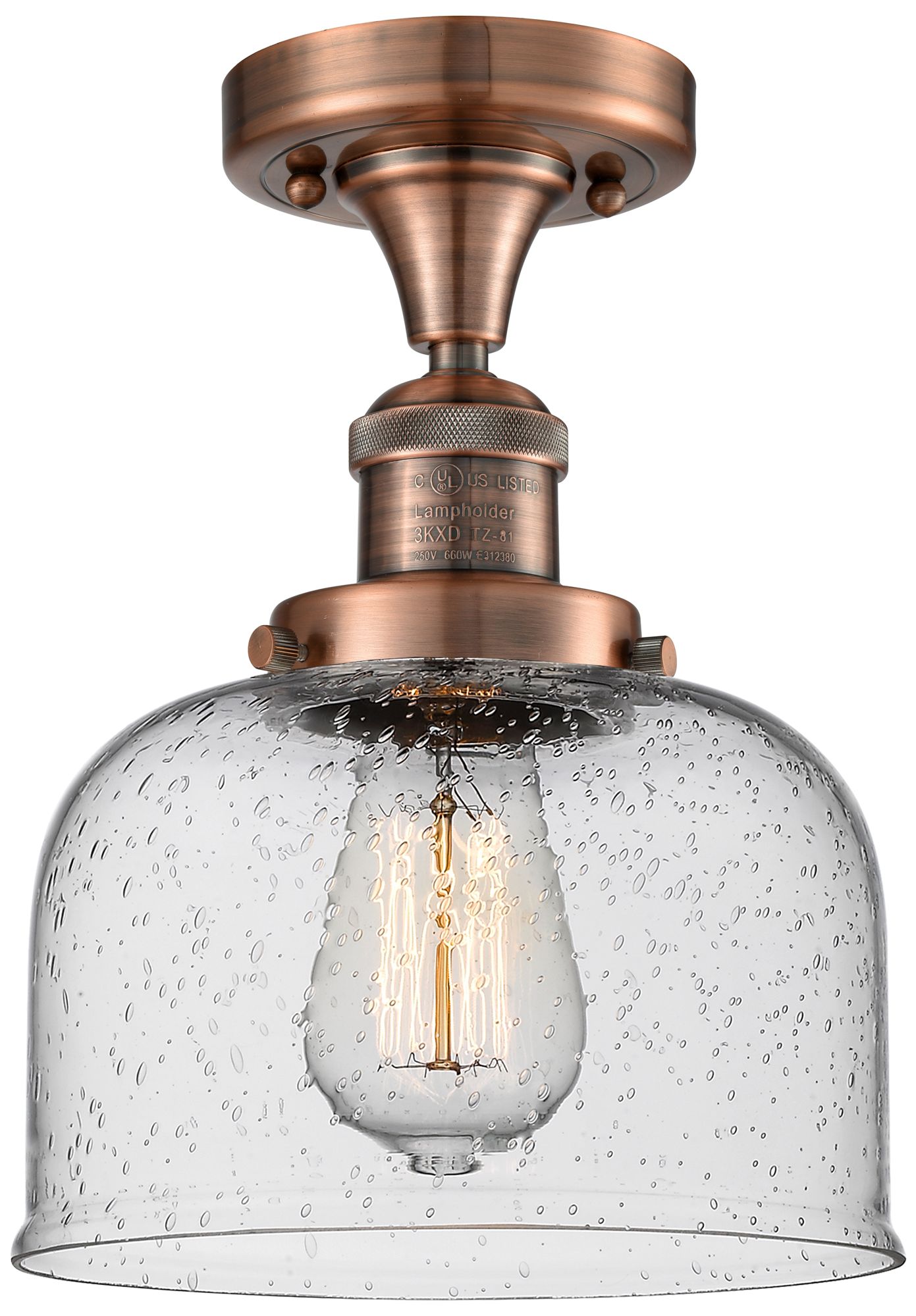 Bell 8" Antique Copper Semi Flush Mount w/ Seedy Shade
