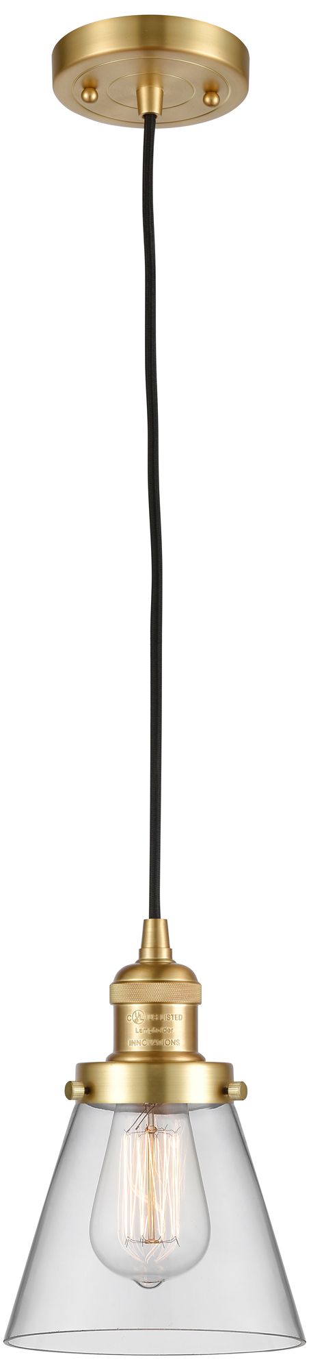 Franklin Restoration Cone 6" LED Mini Pendant - Satin Gold - Clear Sha