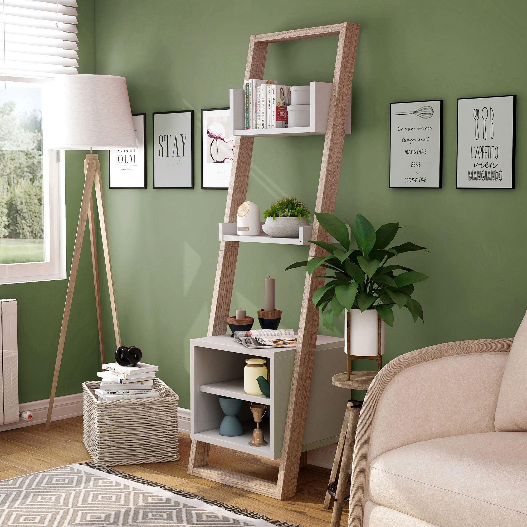 Daemore 20 3/4"W Natural and White 5-Shelf Ladder Bookcase
