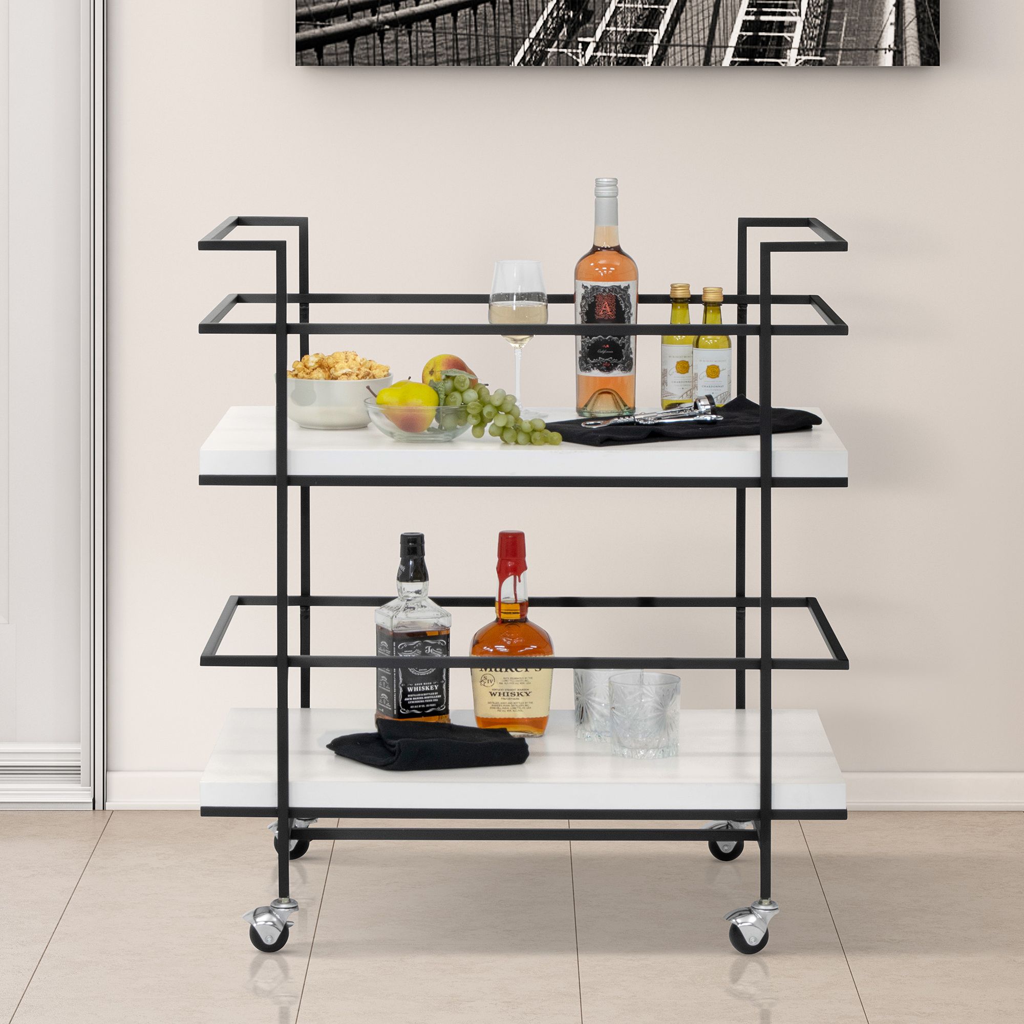 Keystone 29" Wide Black and White 2-Tier Bar Cart with Shelf Guards