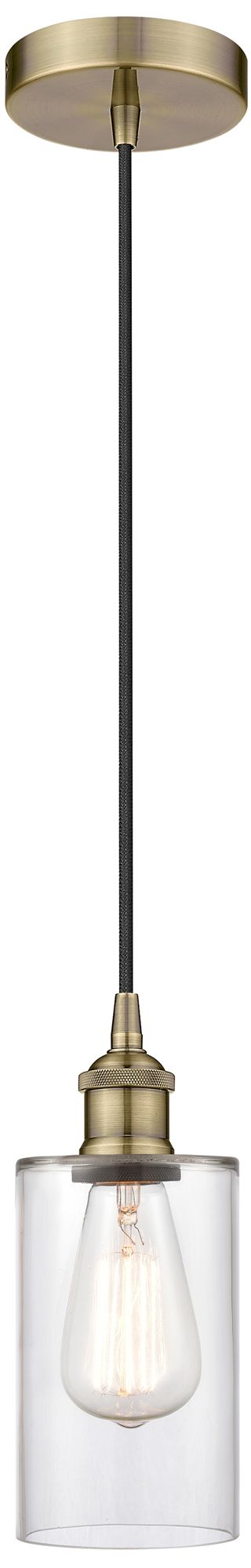 Edison Clymer 4" Antique Brass Cord Hung Mini Pendant w/ Clear Shade