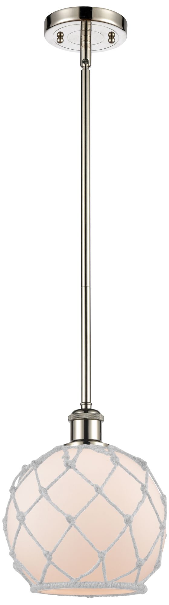 Farmhouse 8"W Stem Hung Polished Nickel Mini Pendant w/ White Shade
