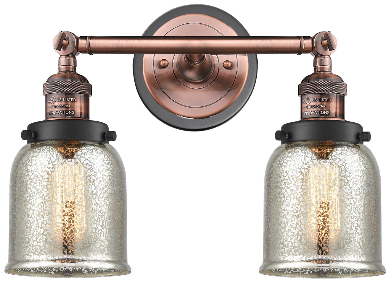 Bell 16"W 2 Light Copper Bath Vanity Light w/ Silver Plated Mercury Sh