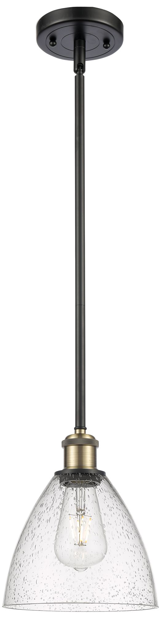 Bristol Glass 7.5" Wide Black Brass Stem Hung Mini Pendant w/ Seedy Sh