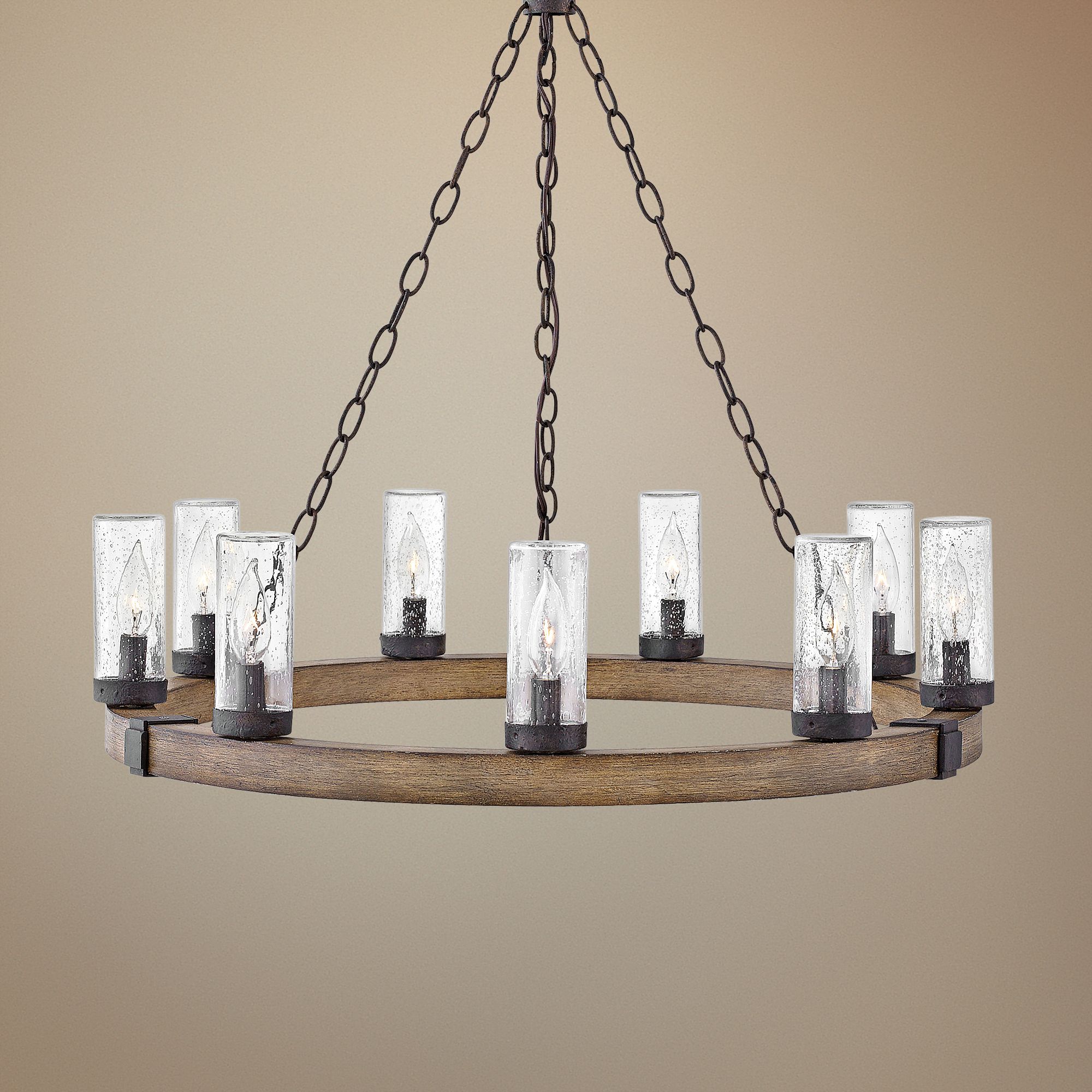 Hinkley Sawyer 30" Wide Sequoia 9-Light Wagon Wheel Outdoor Chandelier