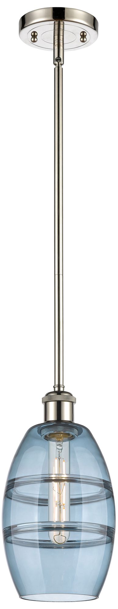 Ballston Vaz 5.88"W Polished Nickel Stemmed Mini Pendant w/ Blue Shade