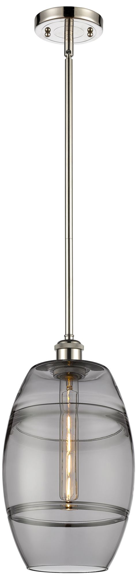 Ballston Vaz 8"W Polished Nickel Stemmed Mini Pendant w/ Light Smoke S