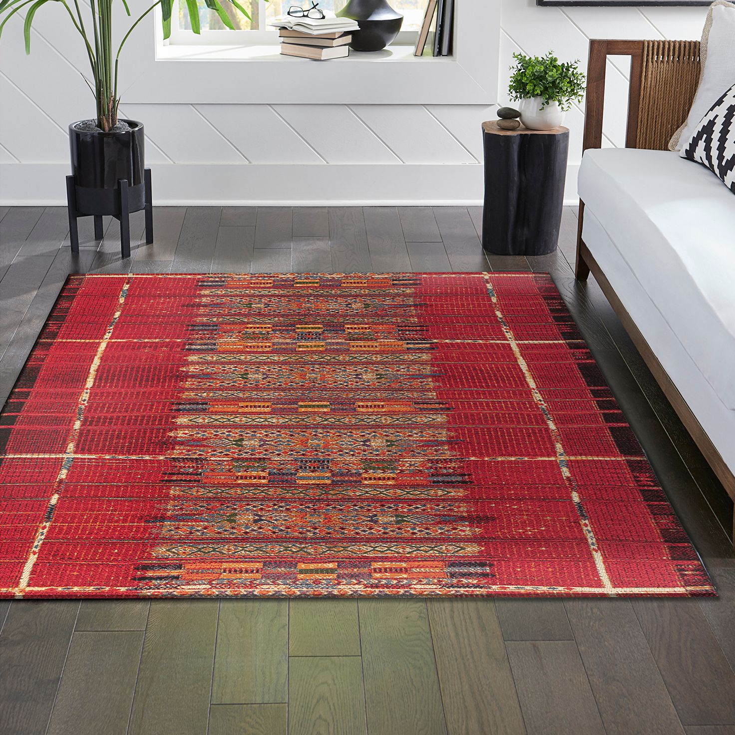 Marina Tribal Stripe 805724 7'10"x9'10" Red Outdoor Area