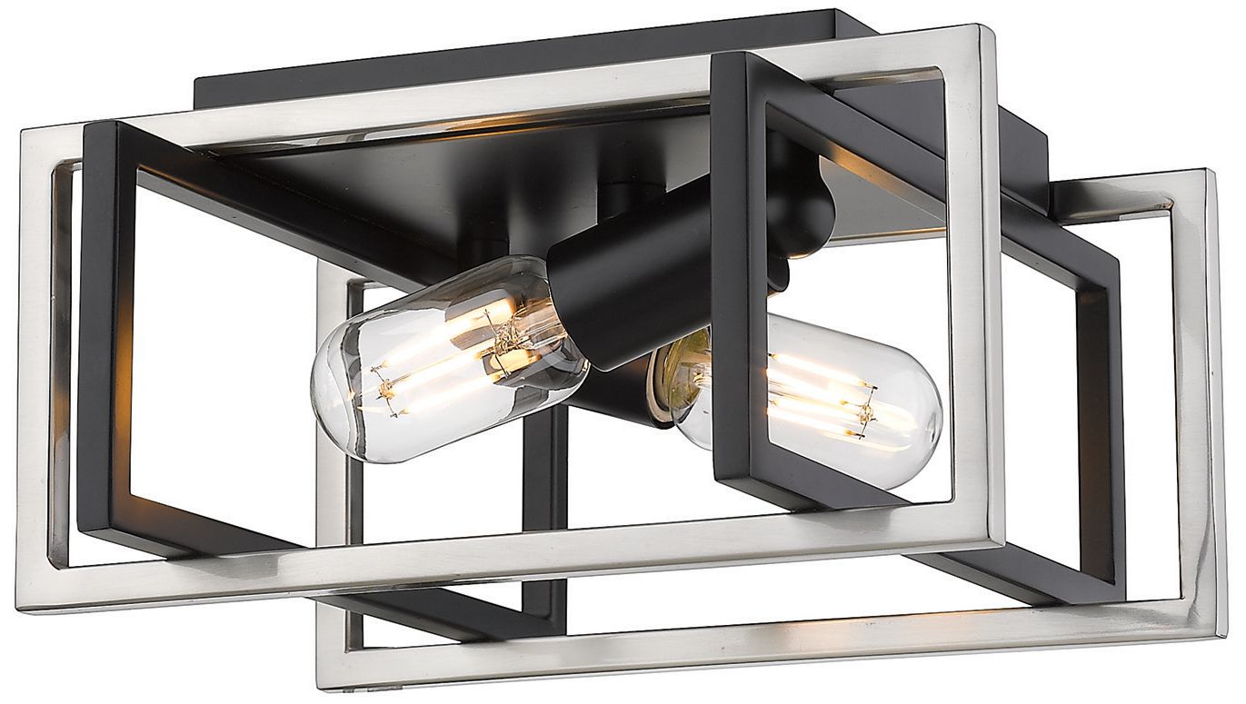 Tribeca 11 1/2" Wide Matte Black 2-Light Flush Mount With Pewter Accen