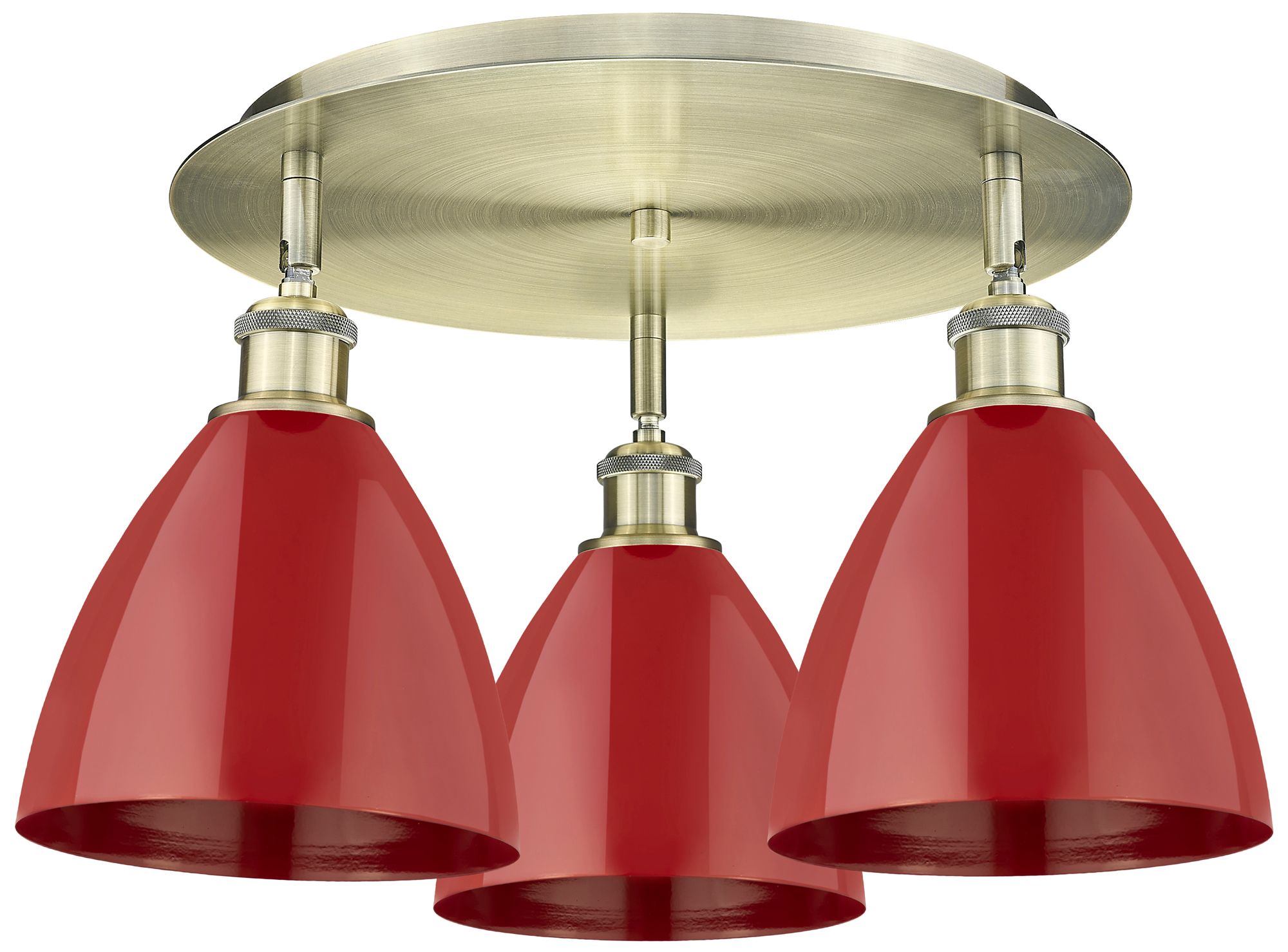 Ballston Dome 19.25" Wide 3 Light Antique Brass Flush Mount With Red S
