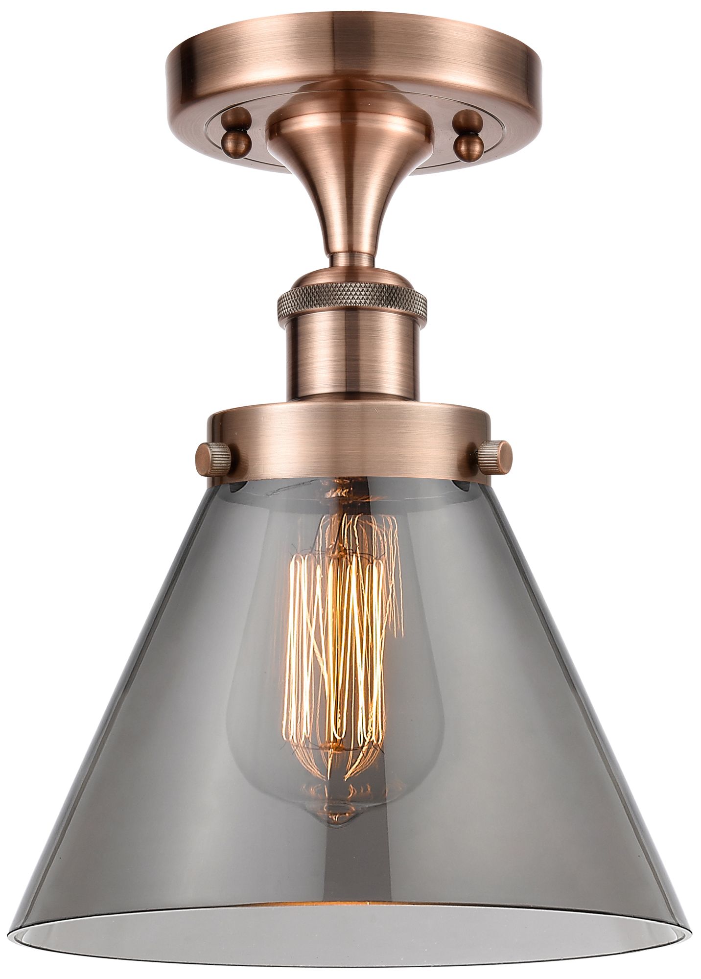 Ballston Urban Cone 8" LED Semi-Flush Mount - Copper - Plated Smoke