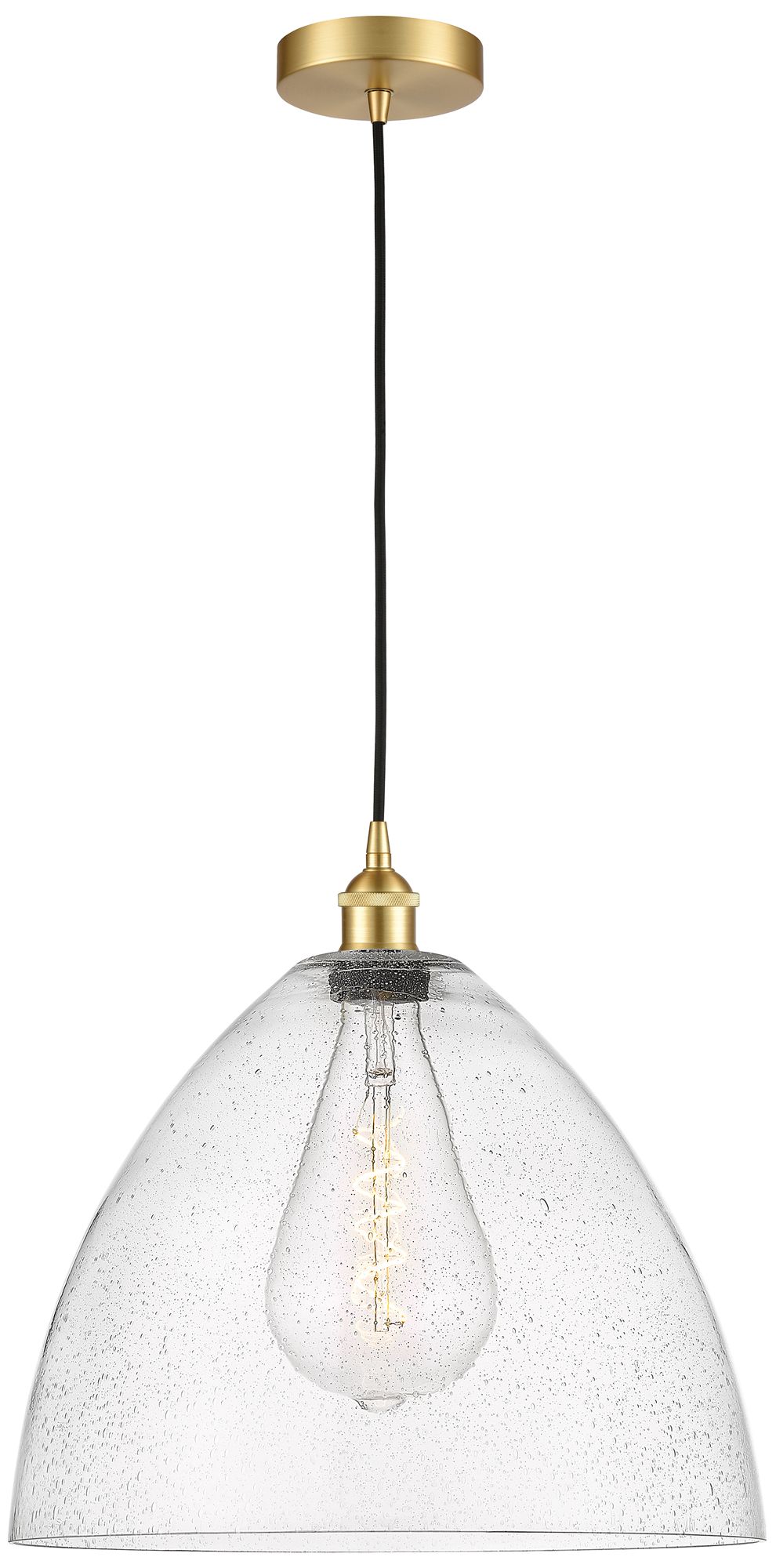 Edison Dome 16" Satin Gold Cord Hung Pendant w/ Seedy Shade