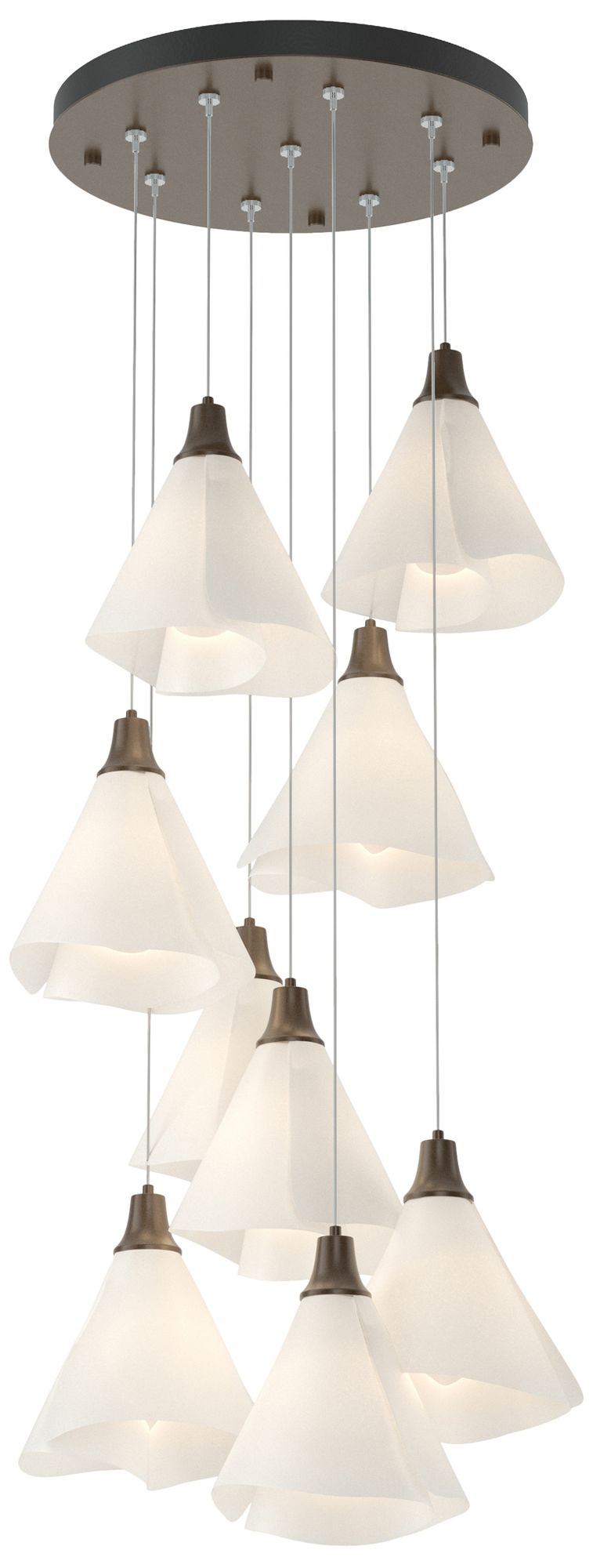 Mobius 20.8"W 9-Light Round Bronze Standard Pendant w/ Spun Frost Shad