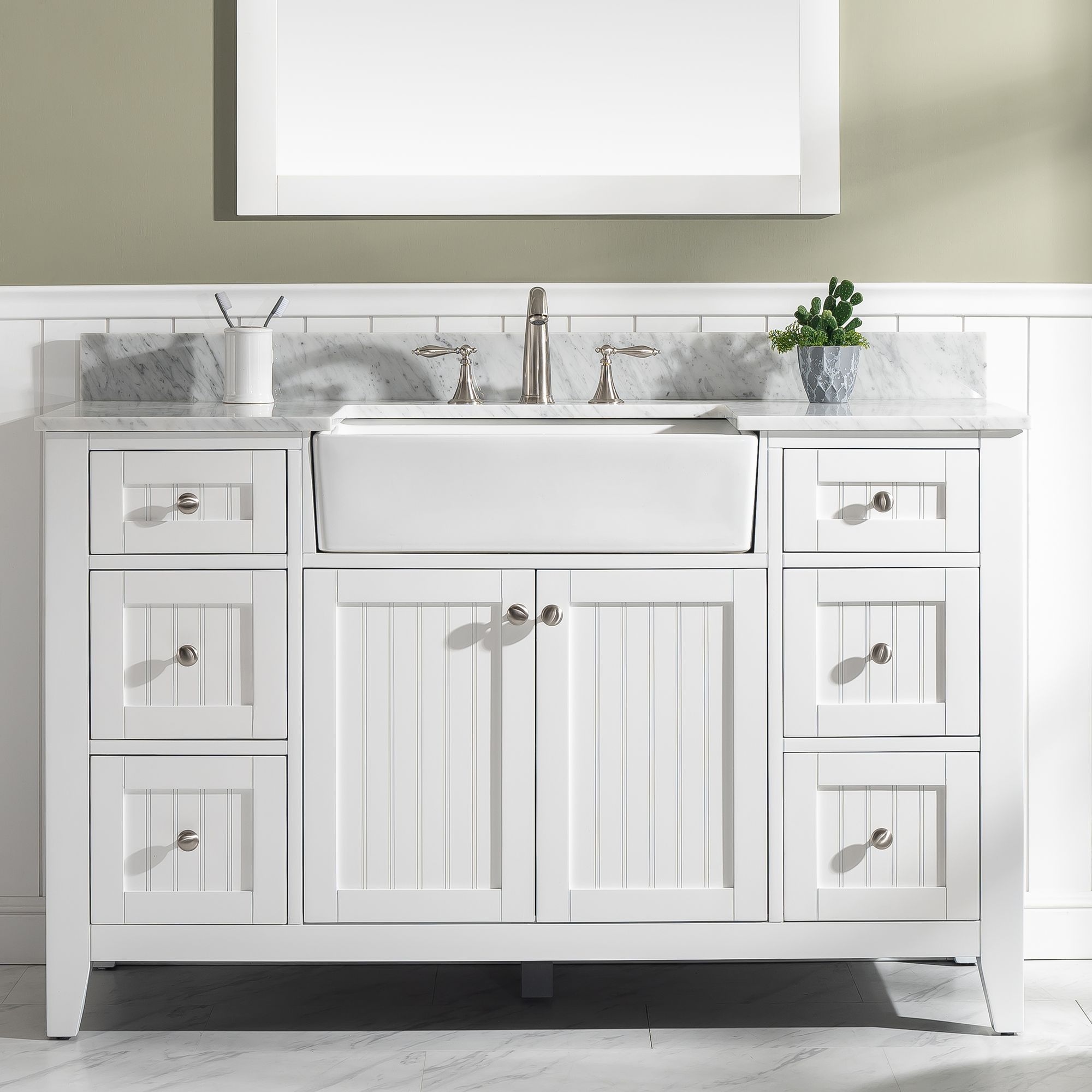 Burbank 54" Wide 2-Door White Marble-Top Single Vanity