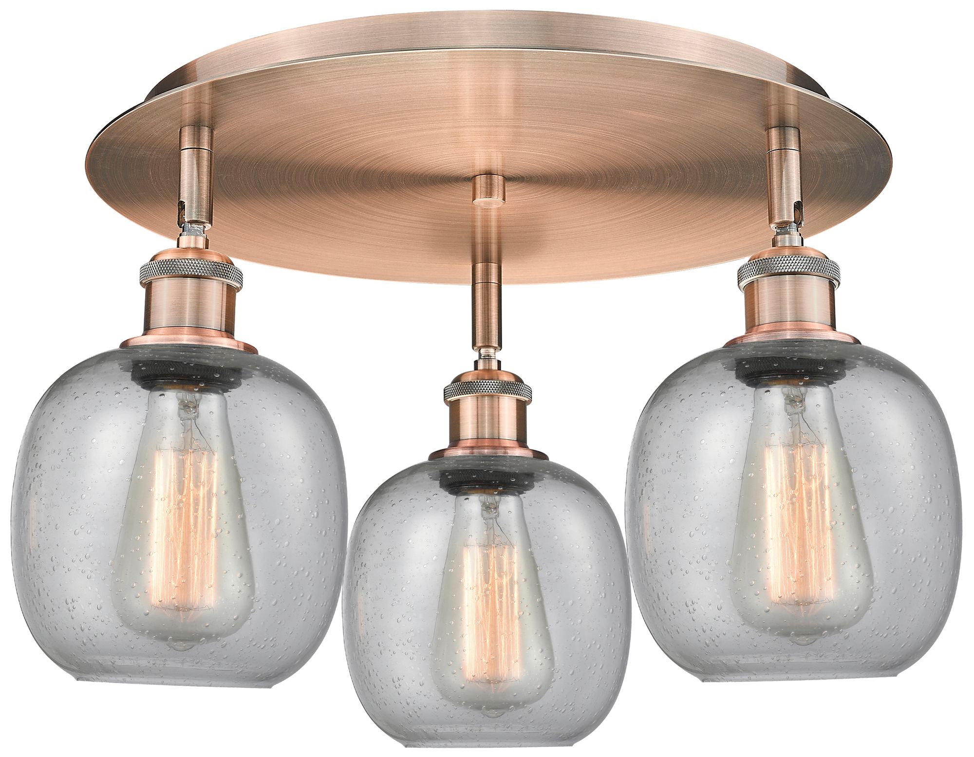 Belfast 17.75"W 3 Light Antique Copper Flush Mount With Seedy Glass Sh