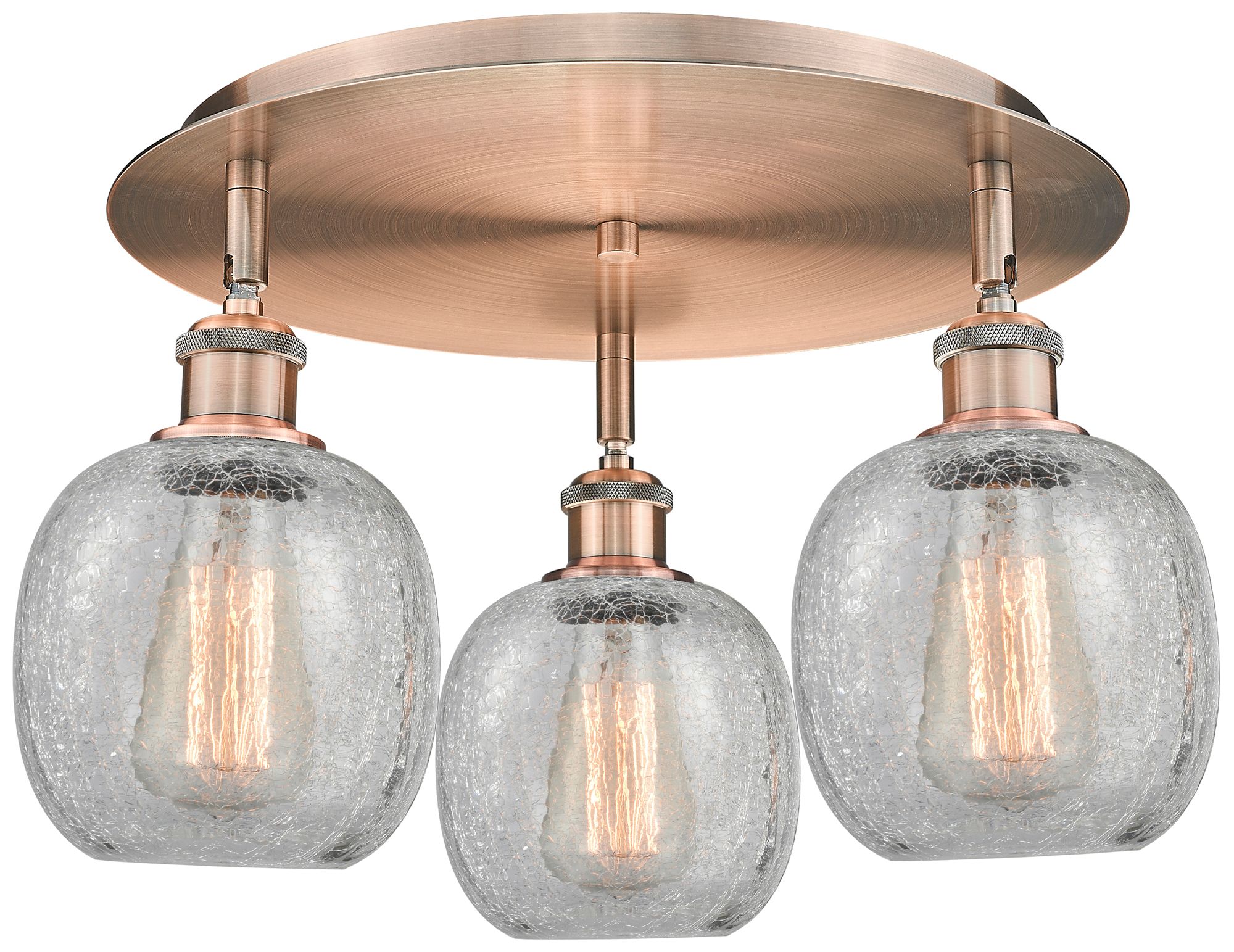 Belfast 17.75"W 3 Light Antique Copper Flush Mount w/ Crackle Glass Sh