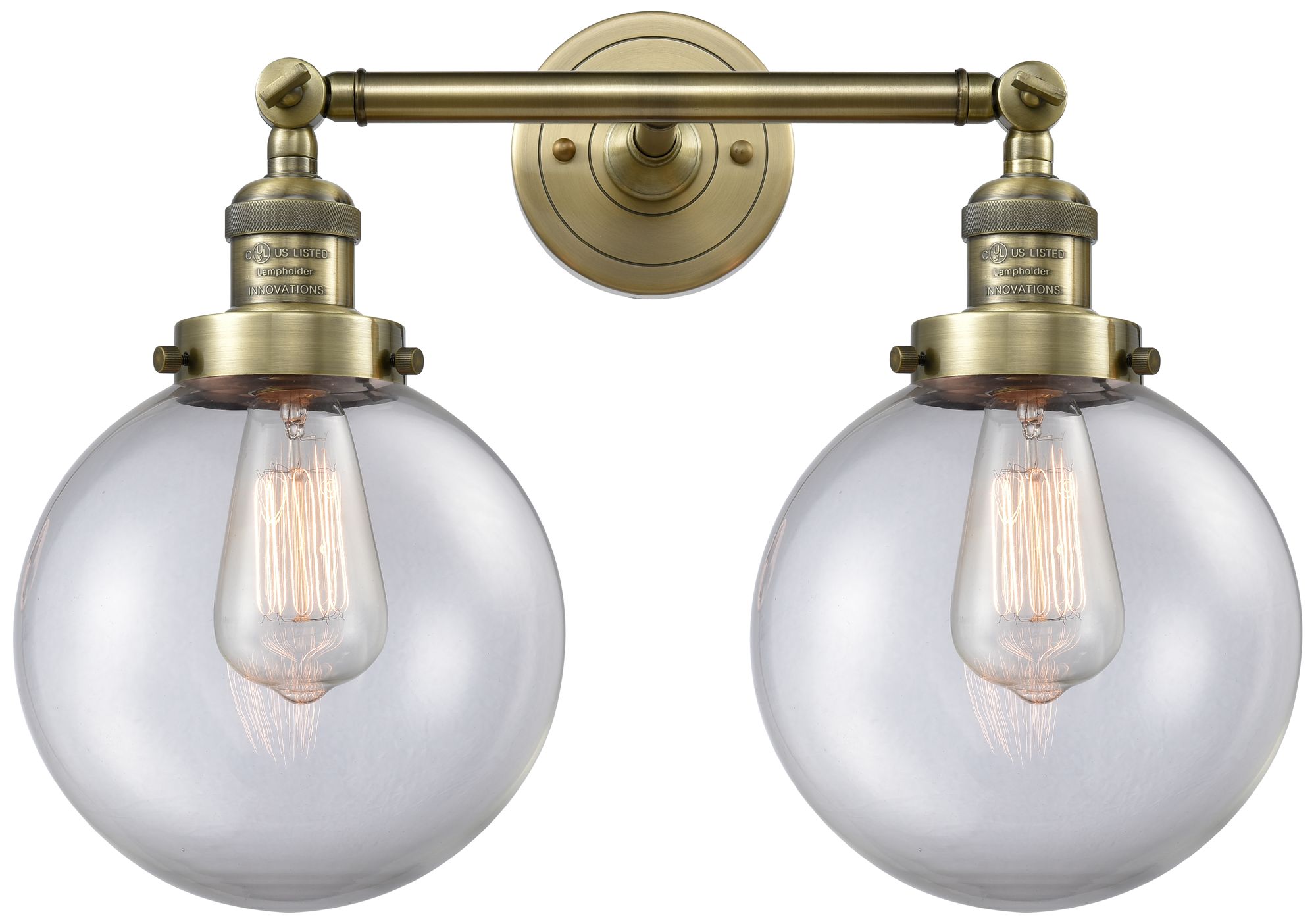 Beacon 19" 2-Light Antique Brass Bath Light w/ Clear Shade