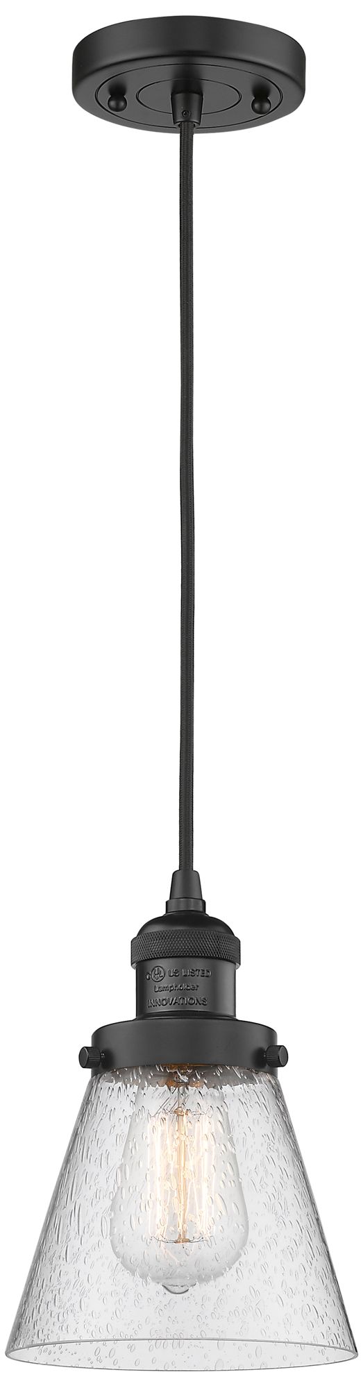 Franklin Restoration Cone 6" Matte Black Corded Mini Pendant w/ Seedy