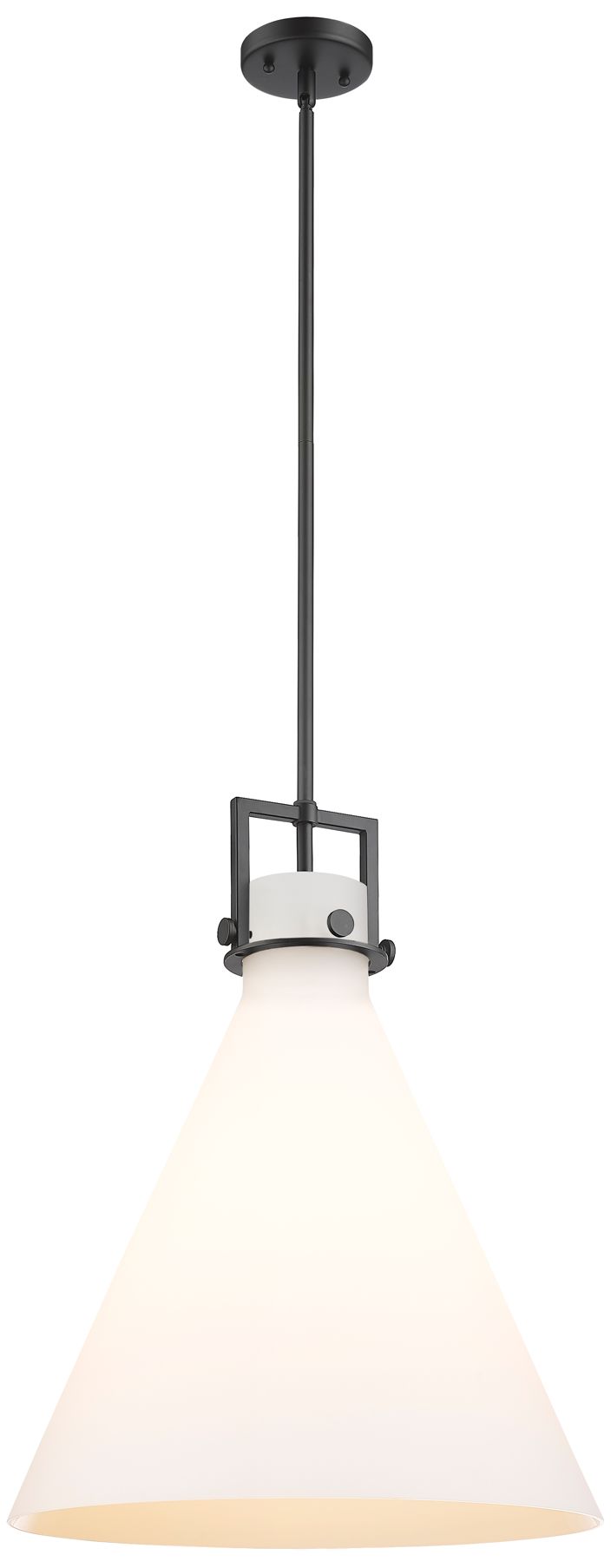 Newton Cone 18" Wide Stem Hung Matte Black Pendant With White Shade