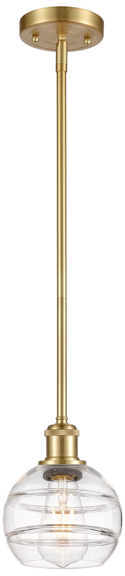 Ballston Rochester 5.88"W Satin Gold Stemmed Mini Pendant w/ Clear Sha