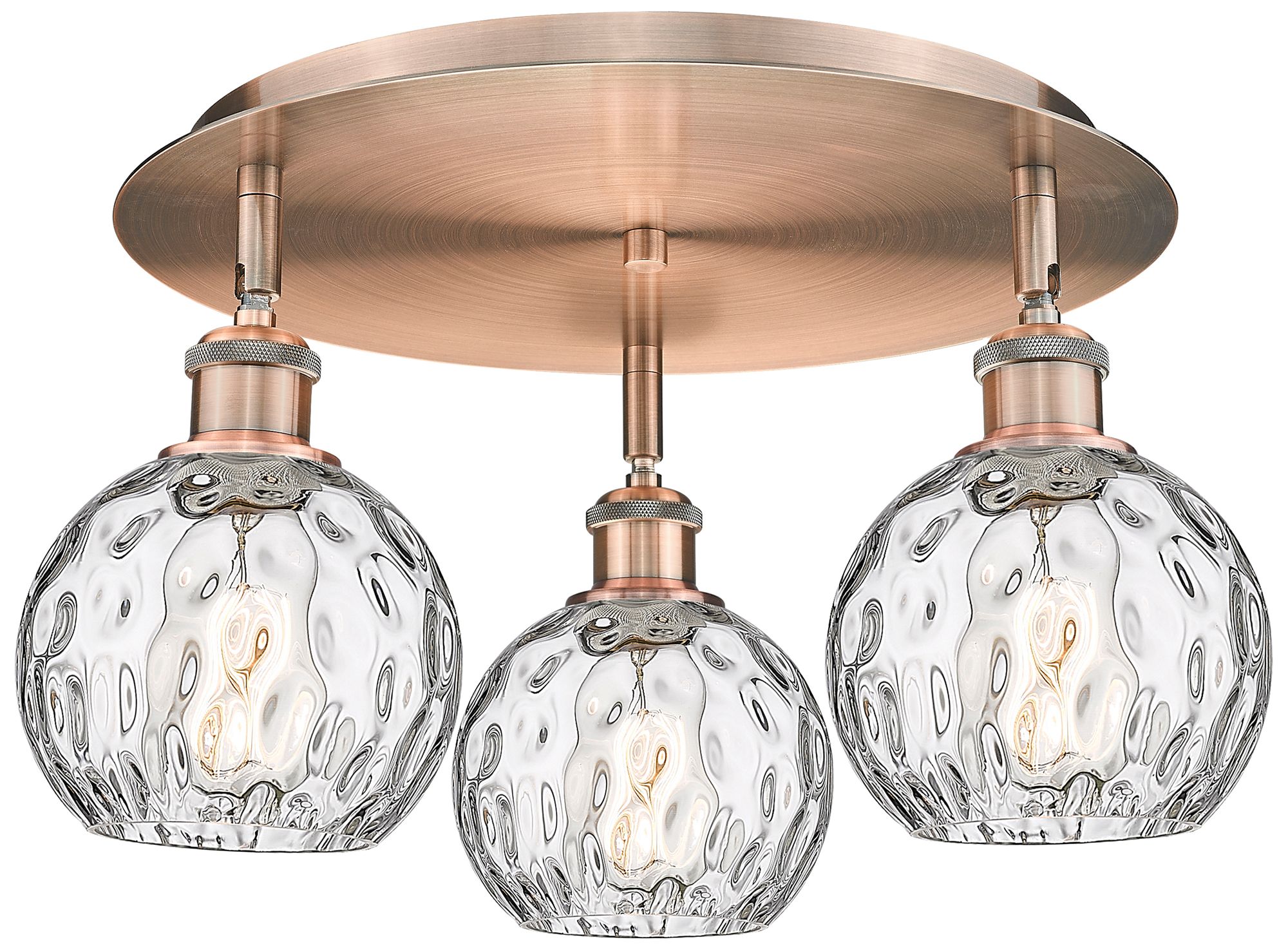 Athens 17.63" Wide 3 Light Antique Copper Flush Mount w/ Water Glass S