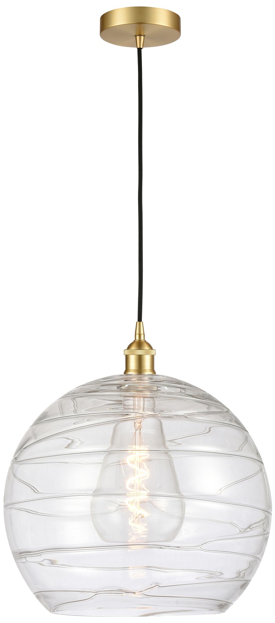 Athens 14" Satin Gold Pendant w/ Clear Deco Swirl Shade
