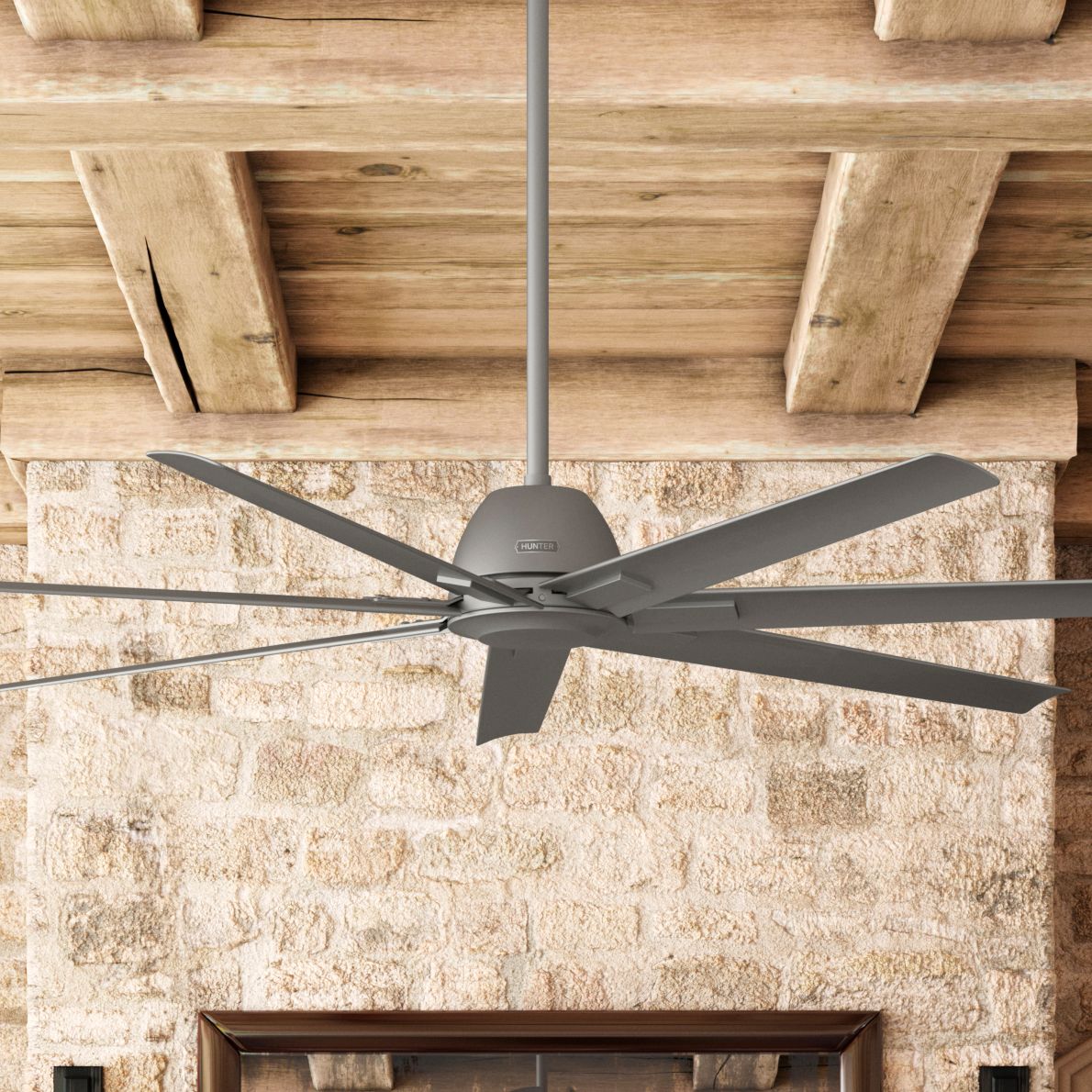 72" Hunter Downtown Matte Silver Outdoor Ceiling Fan with Wall Control