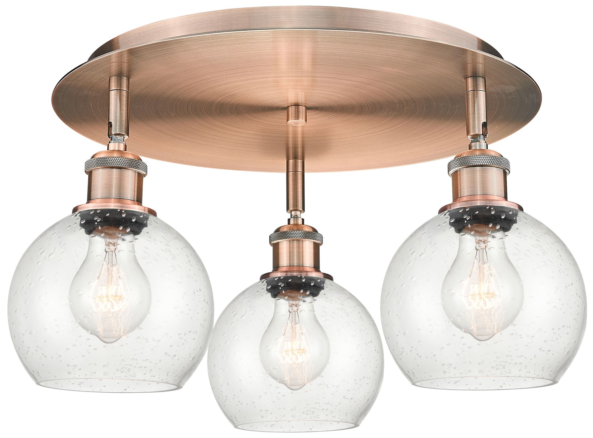 Athens 17.75" Wide 3 Light Antique Copper Flush Mount With Seedy Shade