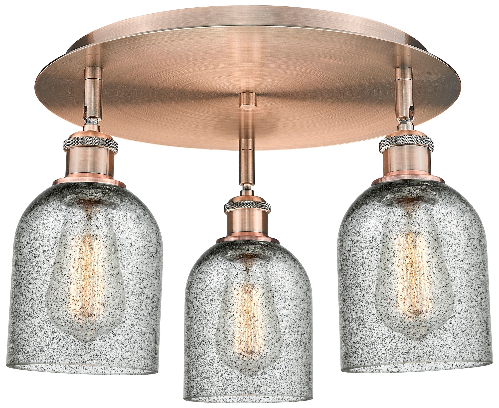 Caledonia 16.75"W 3 Light Antique Copper Flush Mount w/ Charcoal Shade