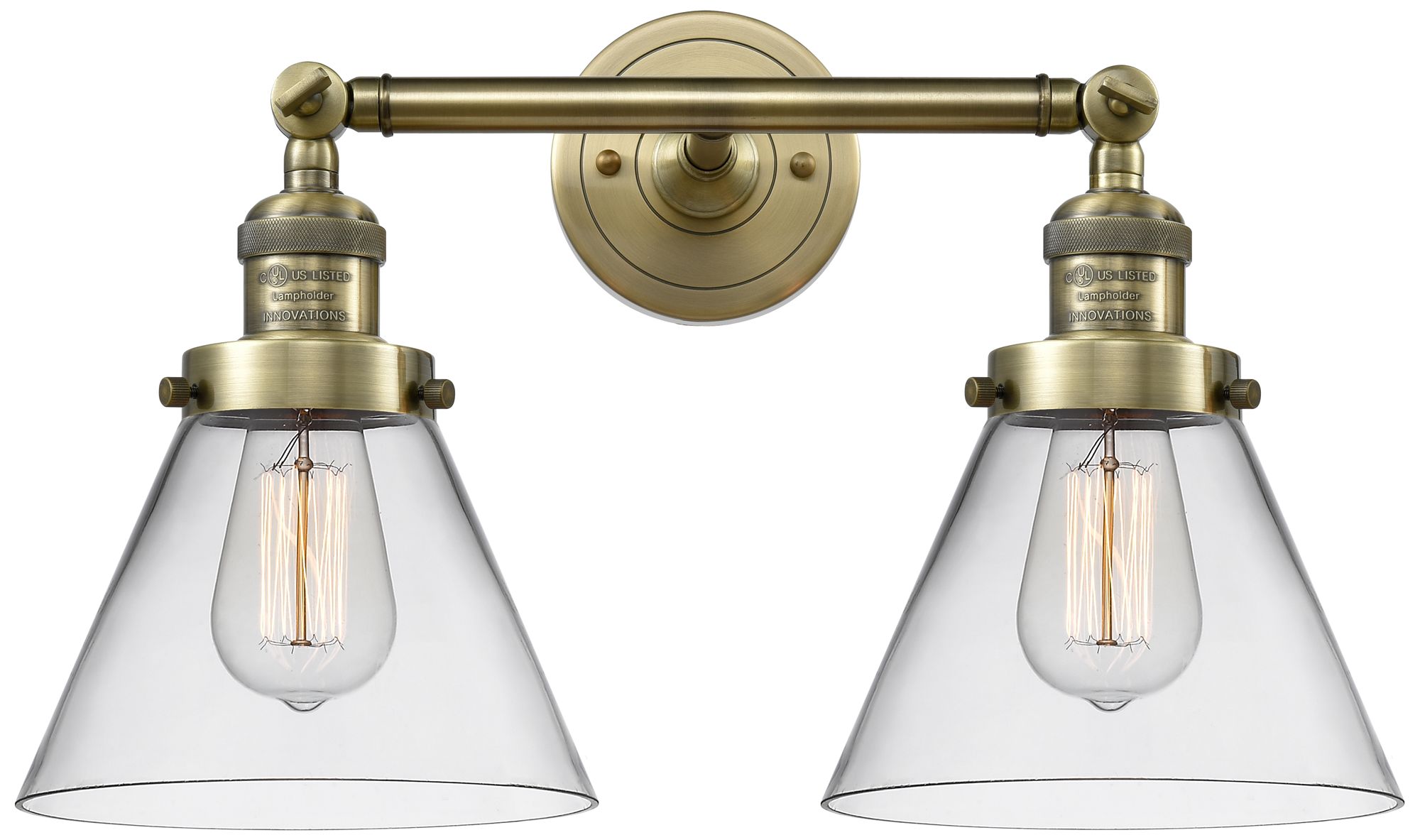 Cone 18" 2-Light Antique Brass Bath Light w/ Clear Shade