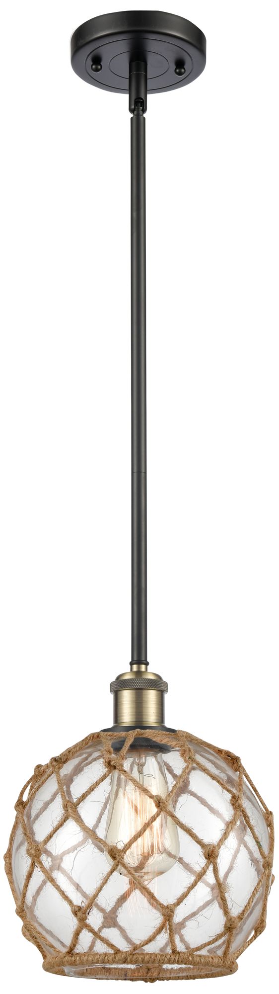 Farmhouse Rope 8"W Black Brass Stem Mini Pendant w/ Clear and Brown Sh