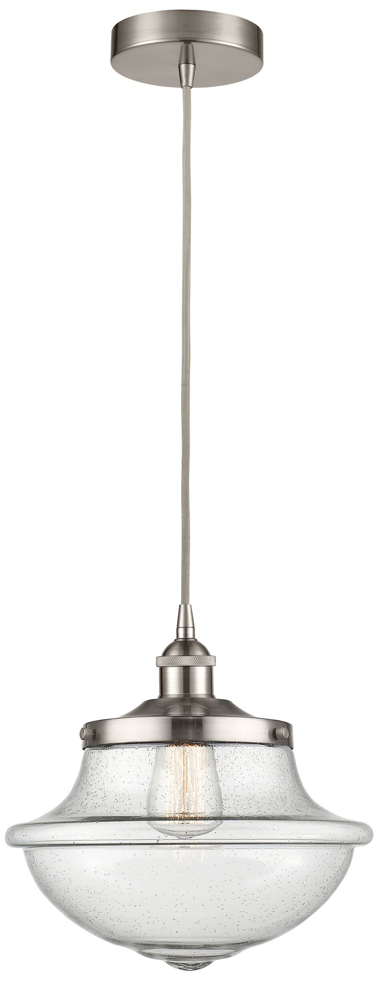 Oxford 11.75" Wide Satin Nickel Corded Mini Pendant w/ Seedy Shade