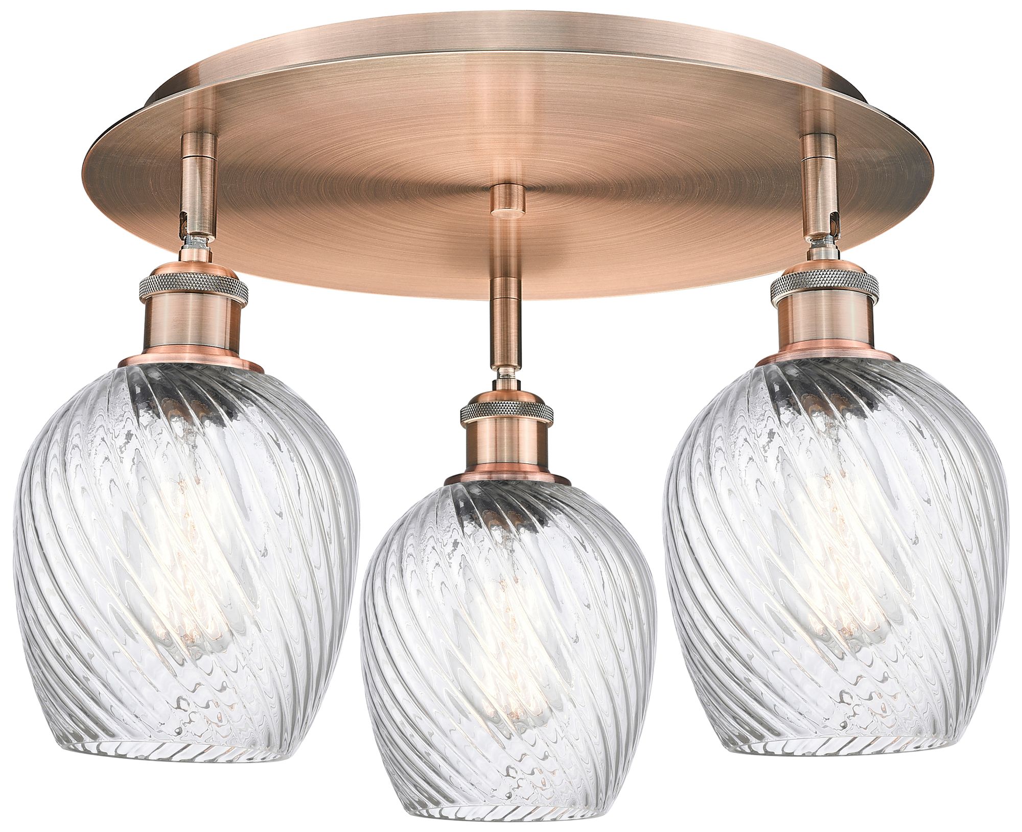 Salina 16.75"W 3 Light Copper Flush Mount w/ Spiral Fluted Glass Shade