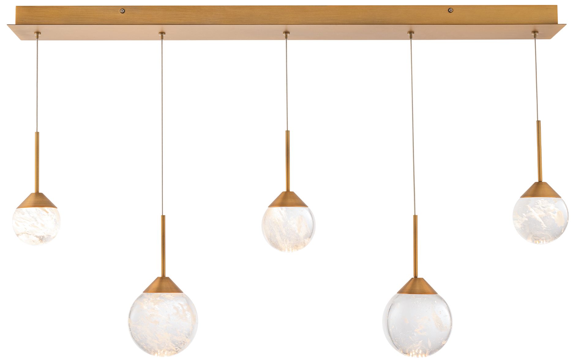 Quest 8"H x 40"W 5-Light Crystal Multi-Light Pendant in Aged Bras