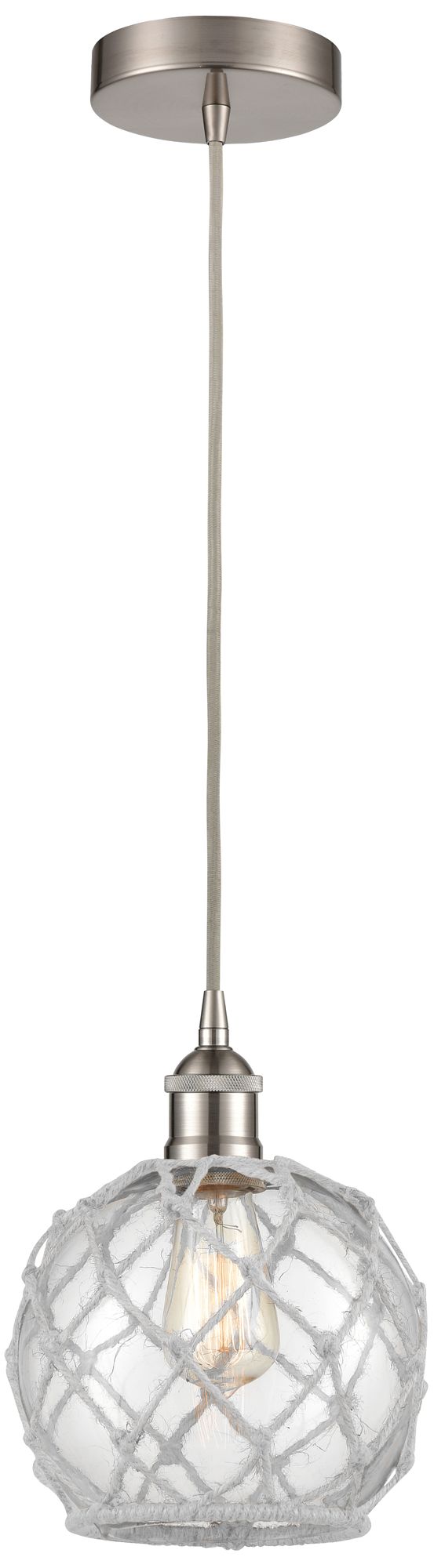 Edison Farmhouse 8" Brushed Nickel Corded Pendant w/ Clear & White