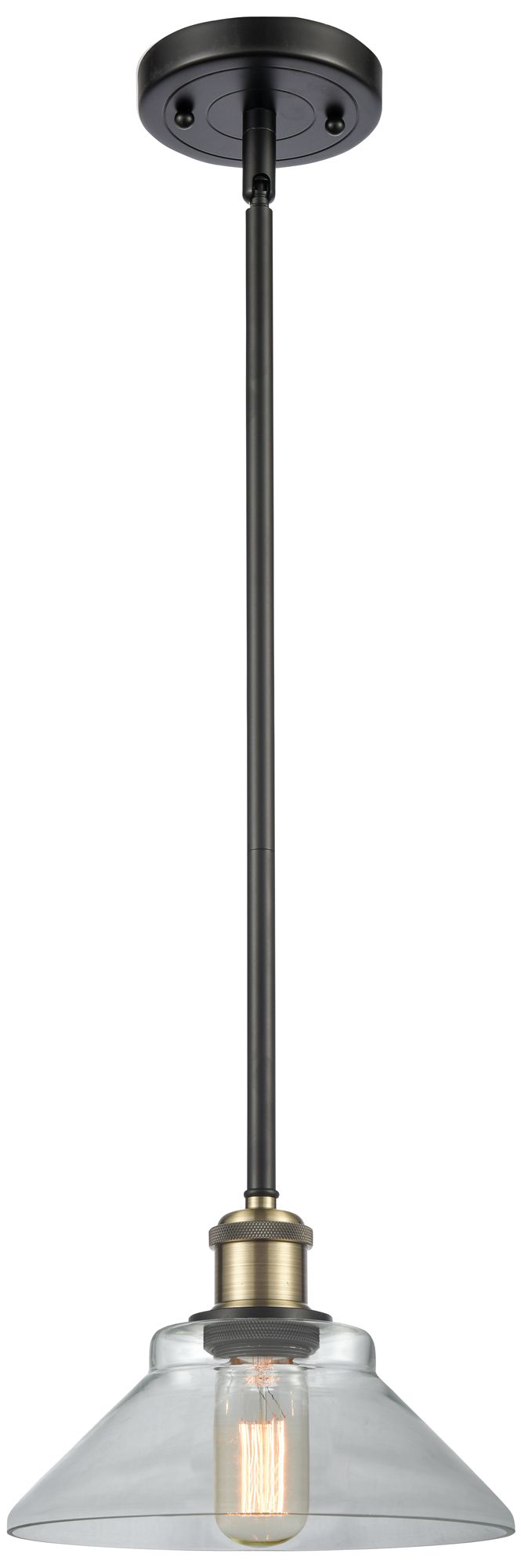 Orwell 8.38" Wide Black Brass Stem Hung Mini Pendant w/ Clear Shade