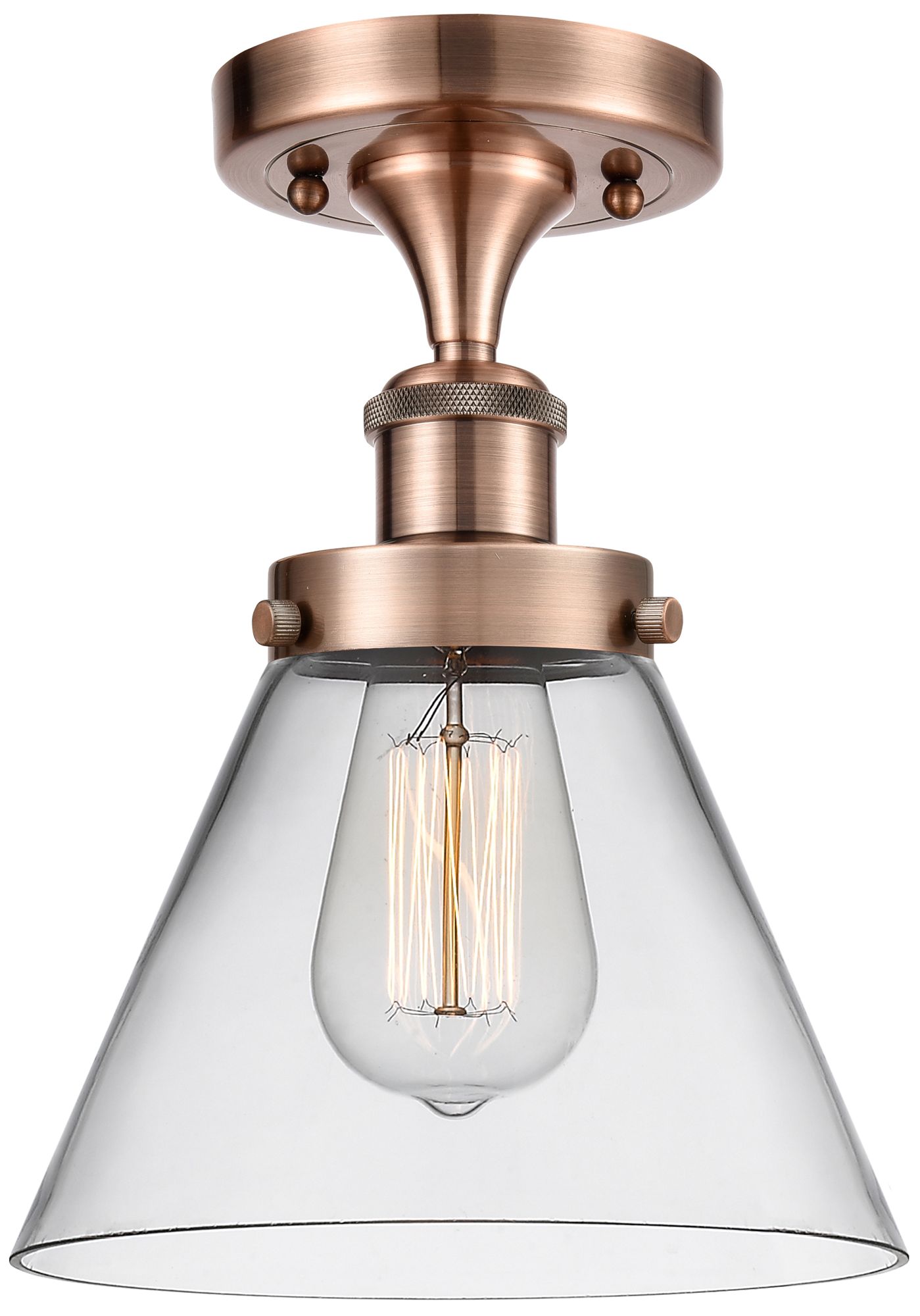 Ballston Urban Cone 8" Semi-Flush Mount - Antique Copper - Clear Shad