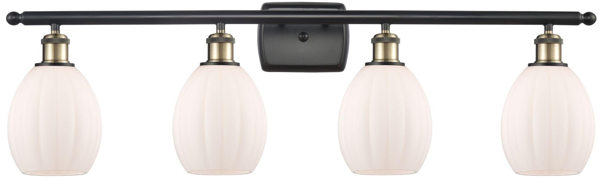 Eaton 36" Wide 4 Light Black Brass Bath Vanity Light w/ Matte White Sh