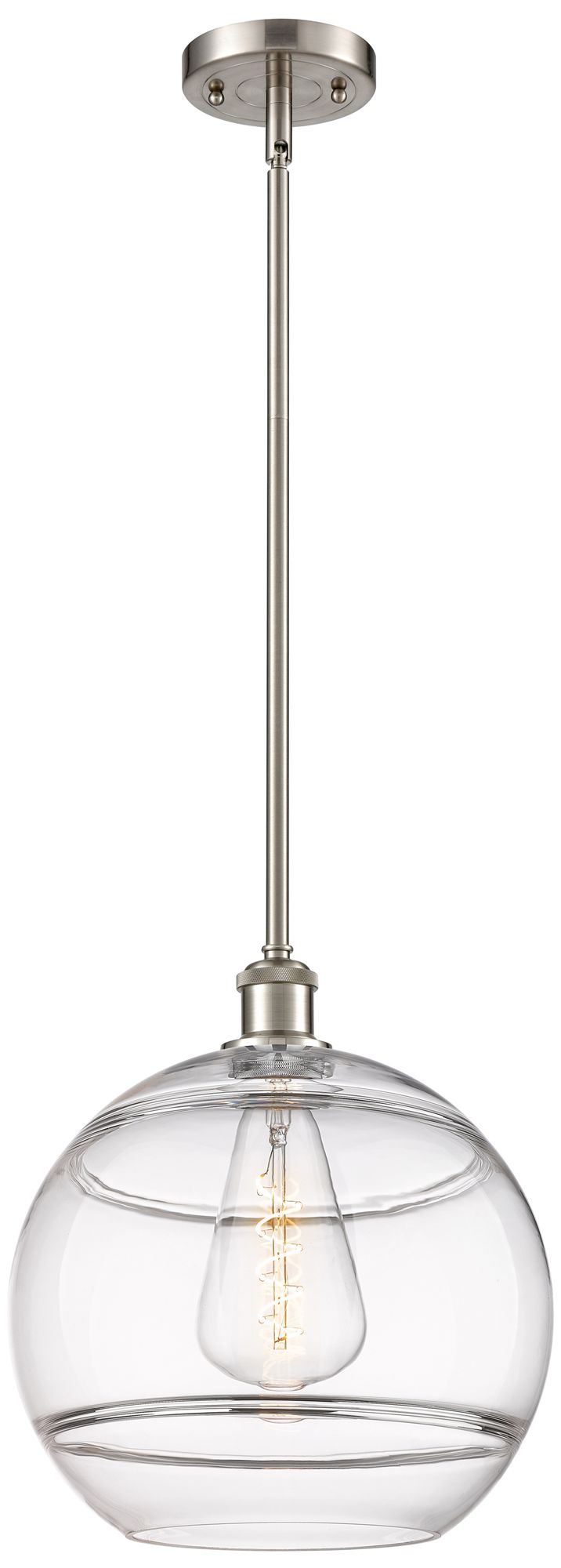 Ballston Rochester 12"W Satin Nickel Stemmed Mini Pendant w/ Clear Sha