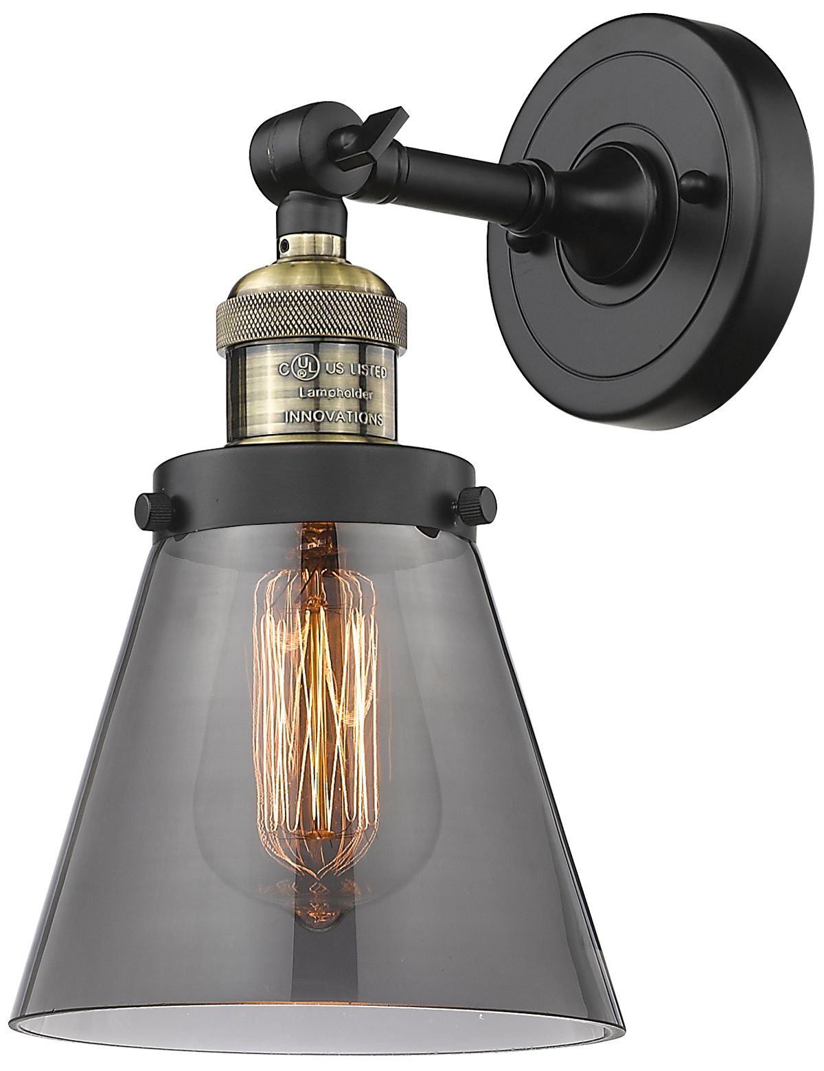 Franklin Restoration Cone 6" LED Sconce - Black Brass Finish - Smoke S